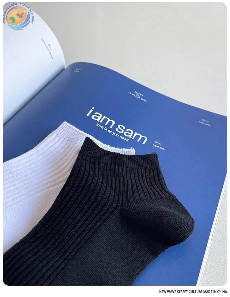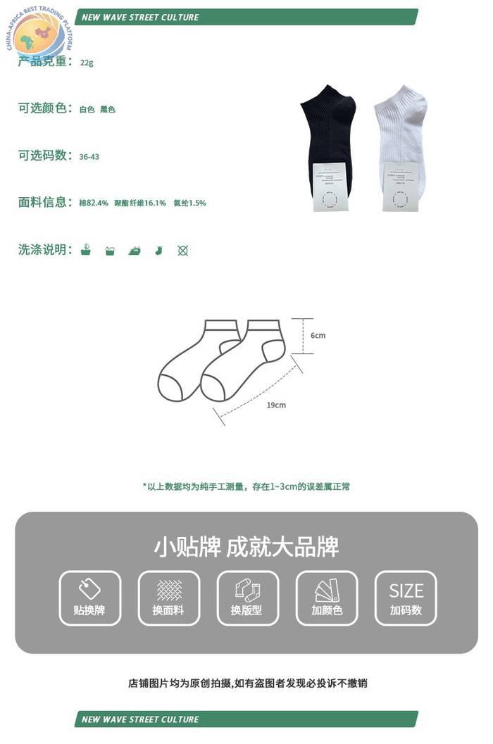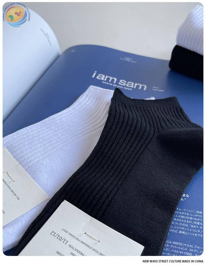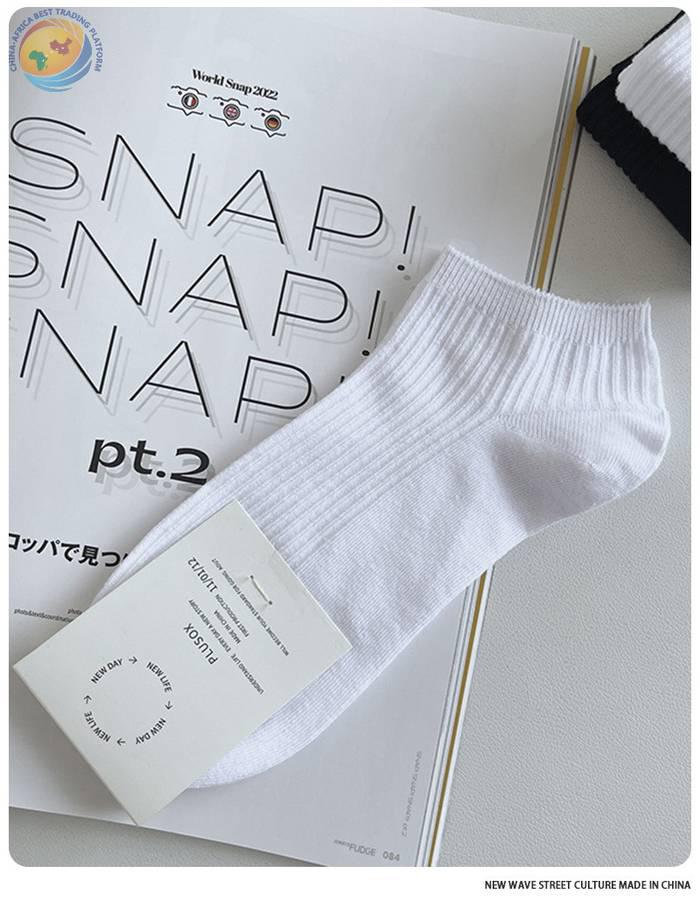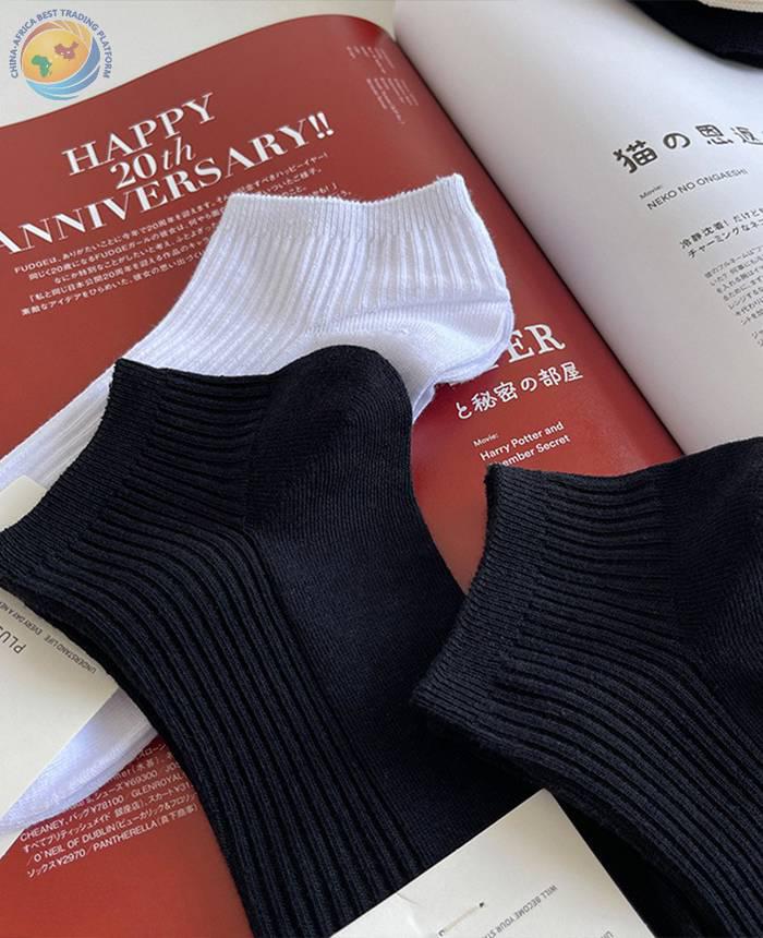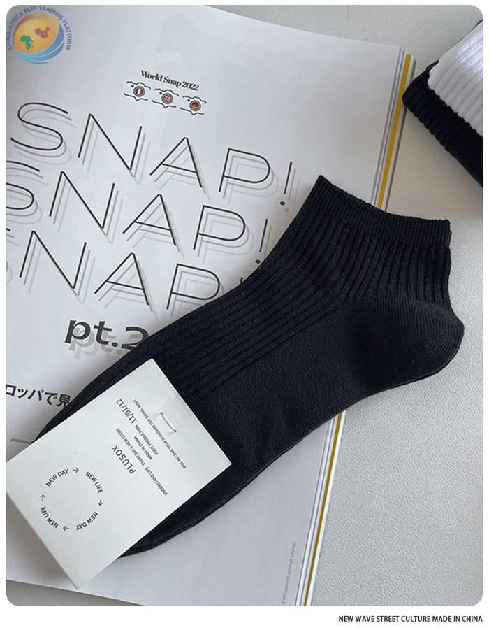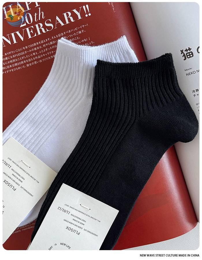 plusox 袜子男短袜春夏季纯棉透气吸汗秋季薄款全棉黑色男士 船袜