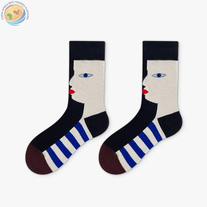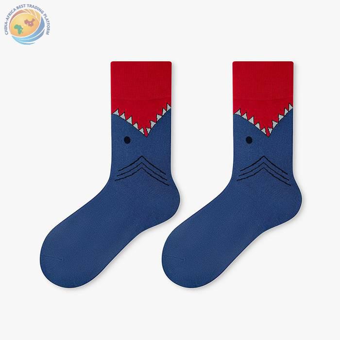 鲨鱼运动袜子女棉中筒袜男韩版潮学院风韩国高长袜街头滑板欧美袜