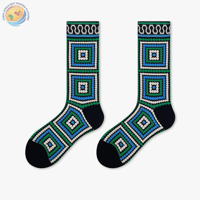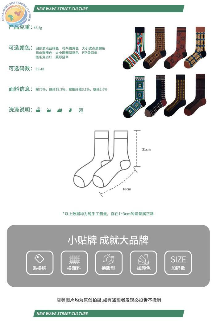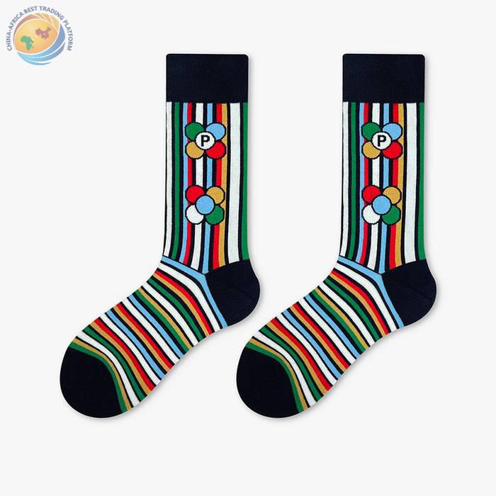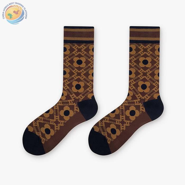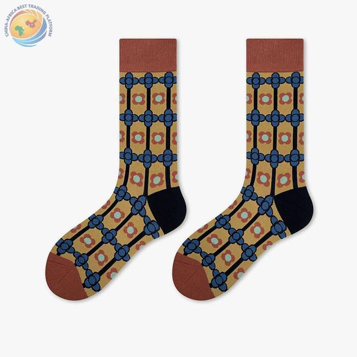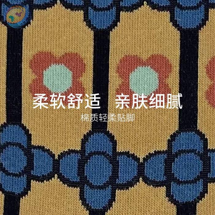 plusox 袜子女油画小雏菊春秋ins百搭中筒袜创意少女复古风中筒袜