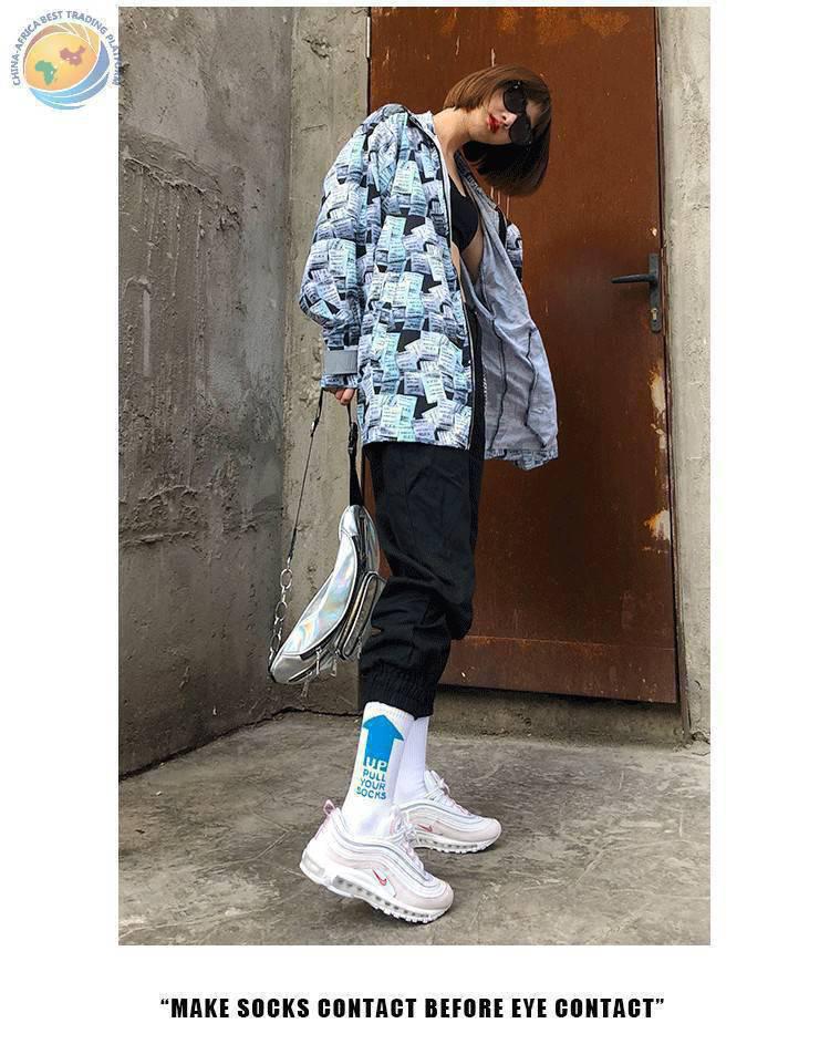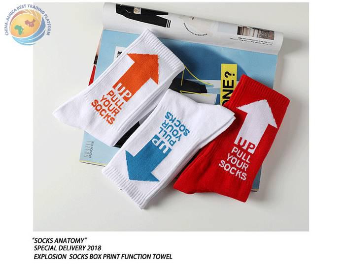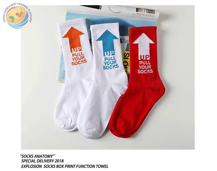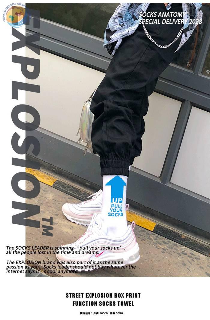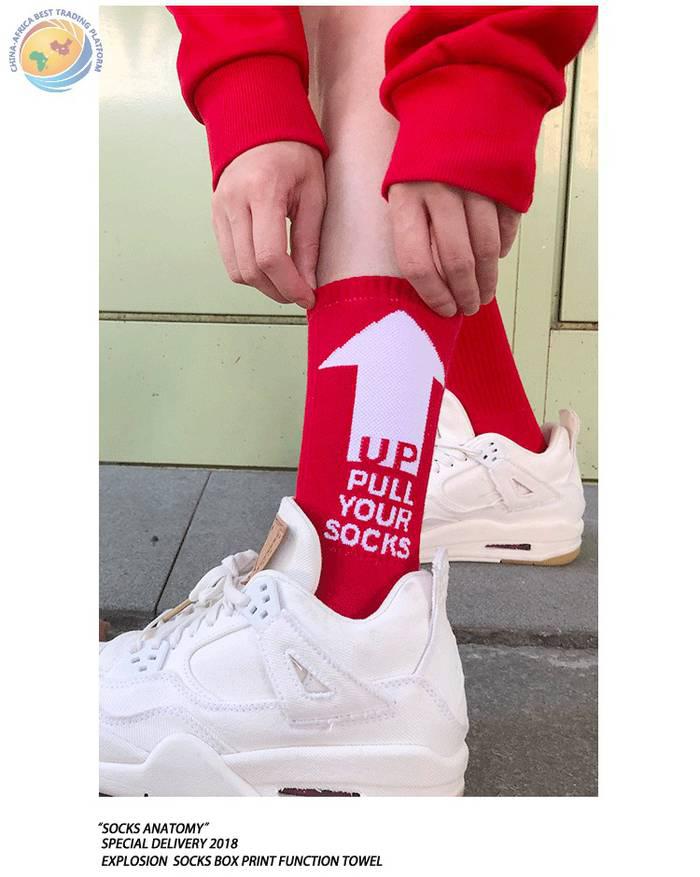 Street Explosion97155潮牌字母箭头街头欧美男女中长筒袜 运动袜