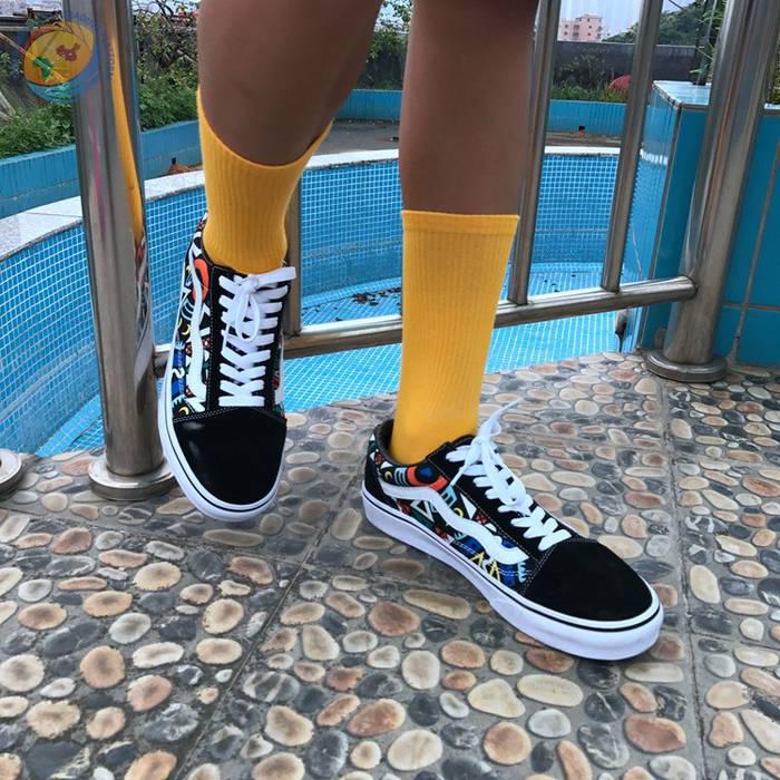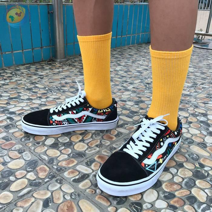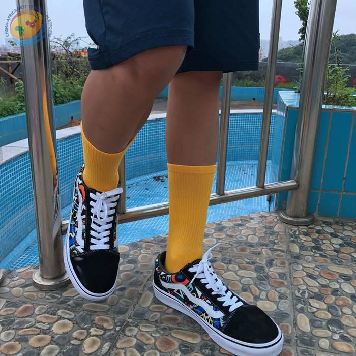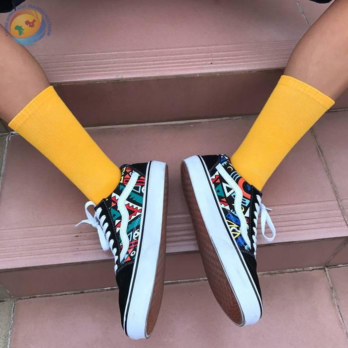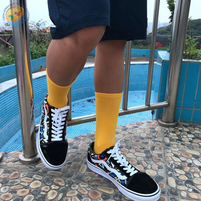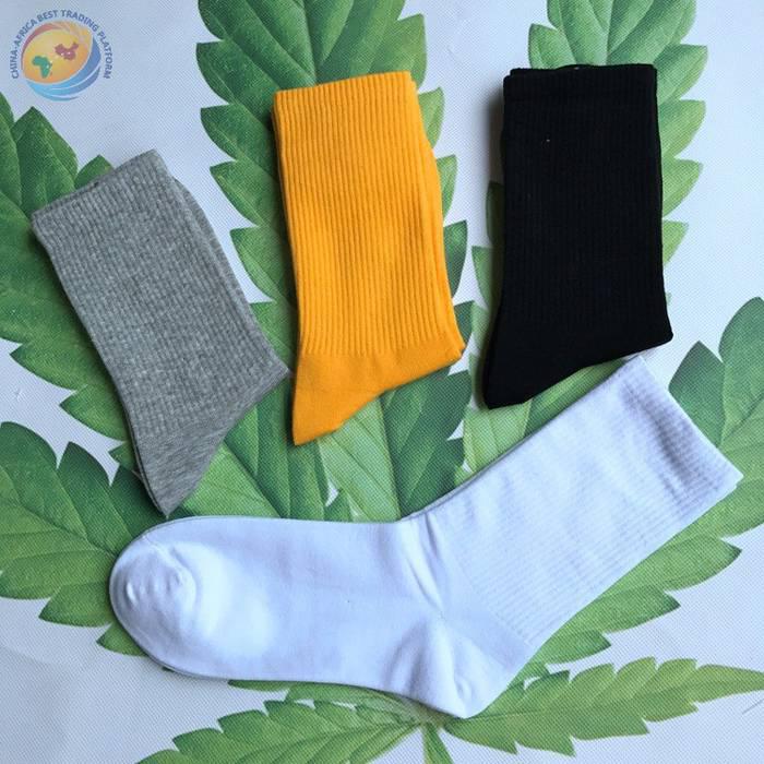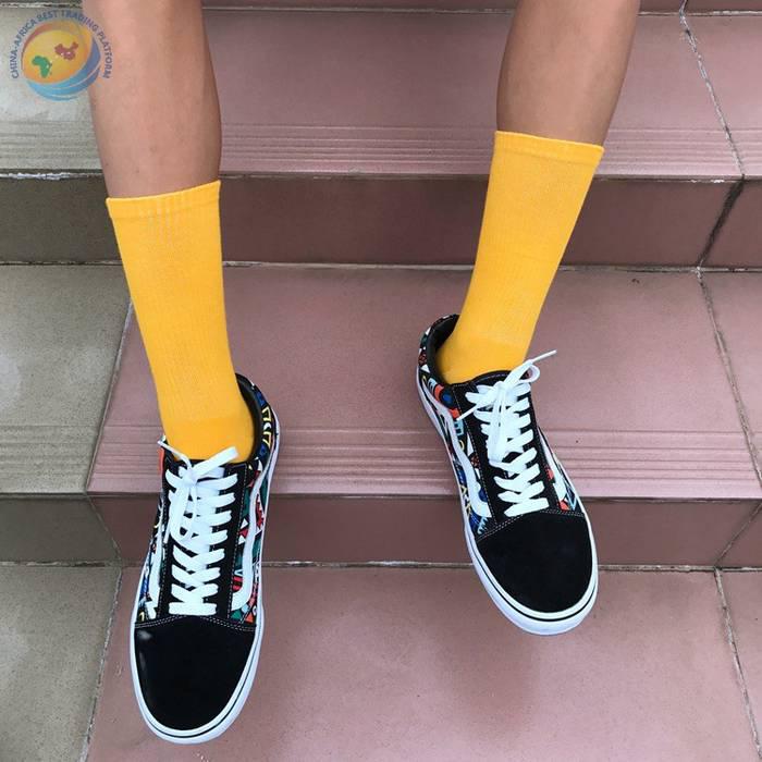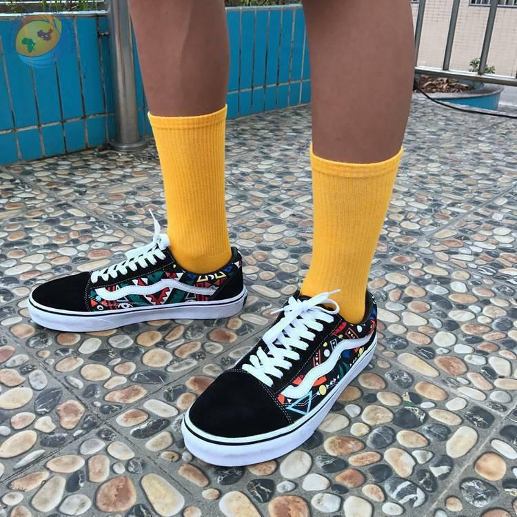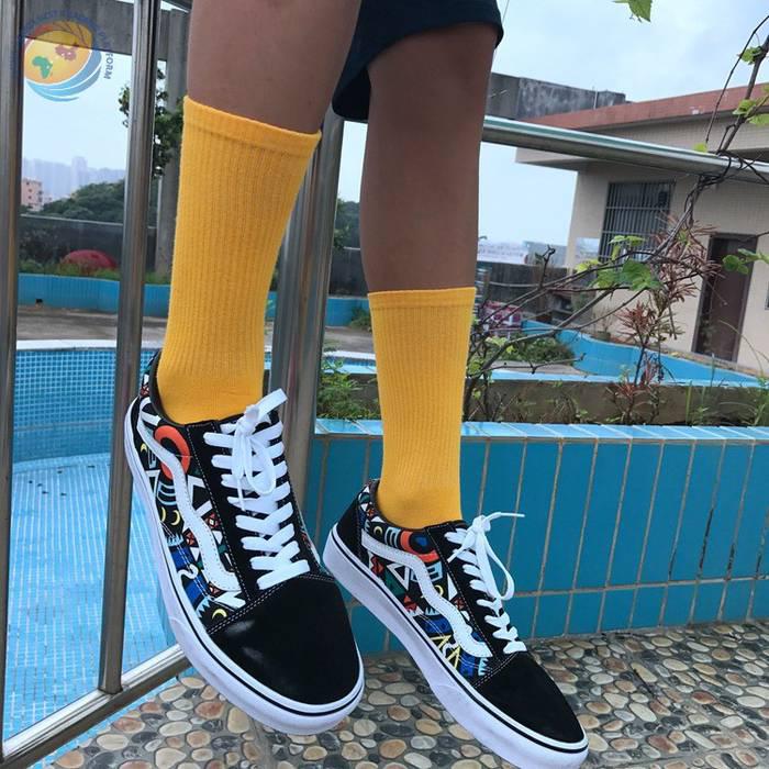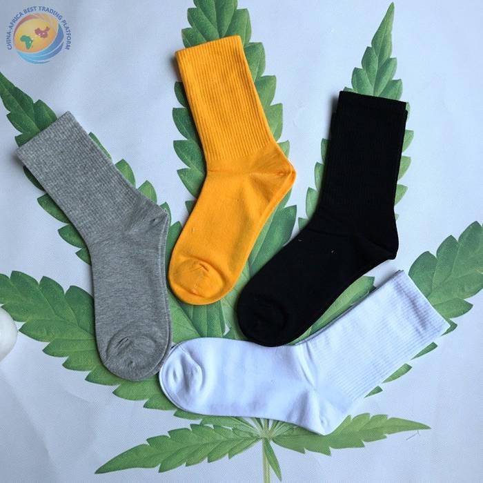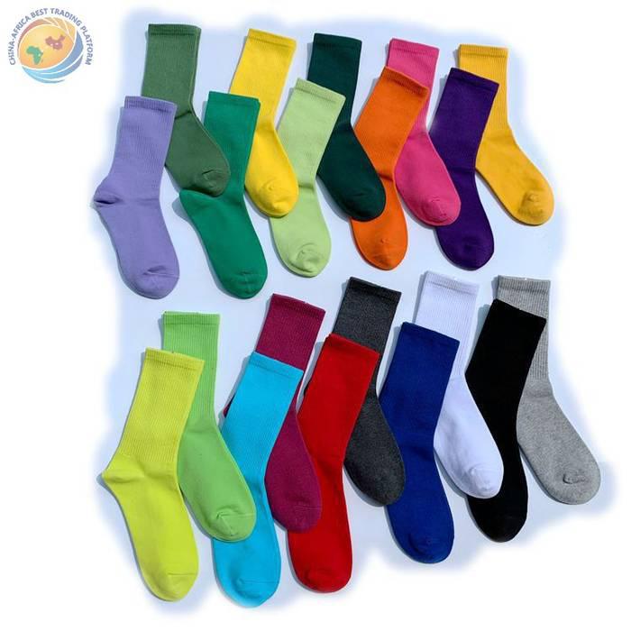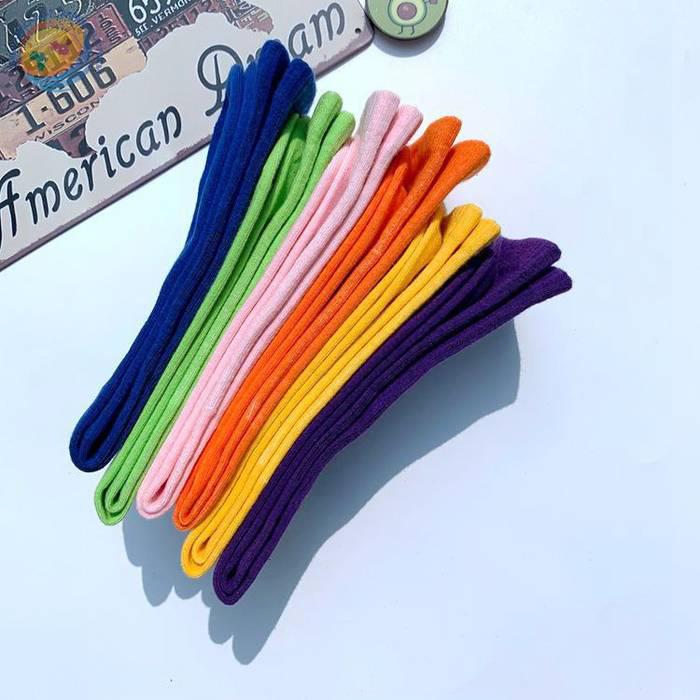韩国INS原宿港风 纯色黑白黃彩色中筒棉袜子男女情侣简约长袜批发