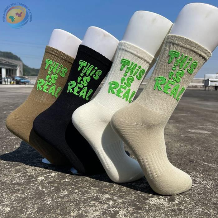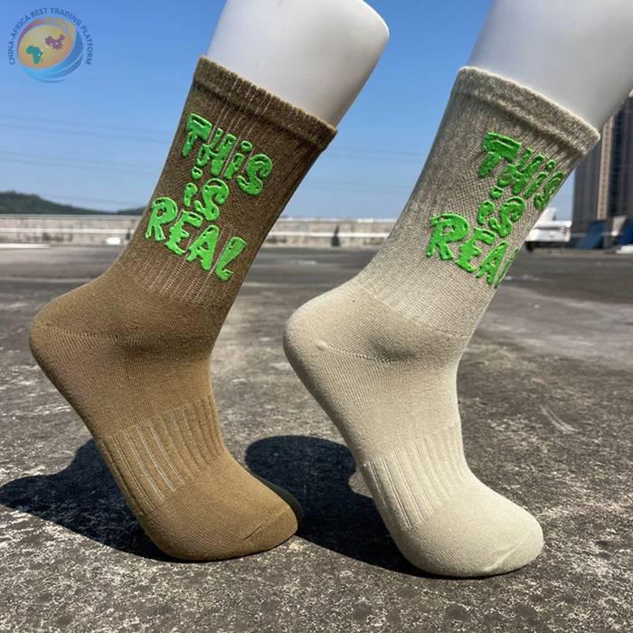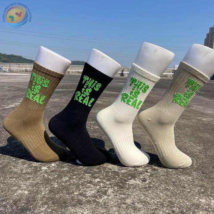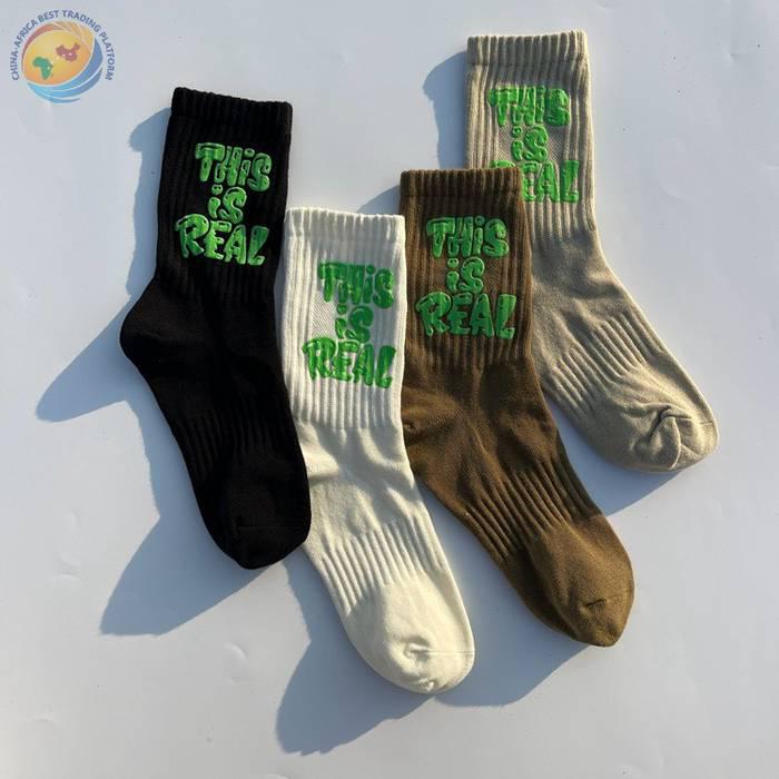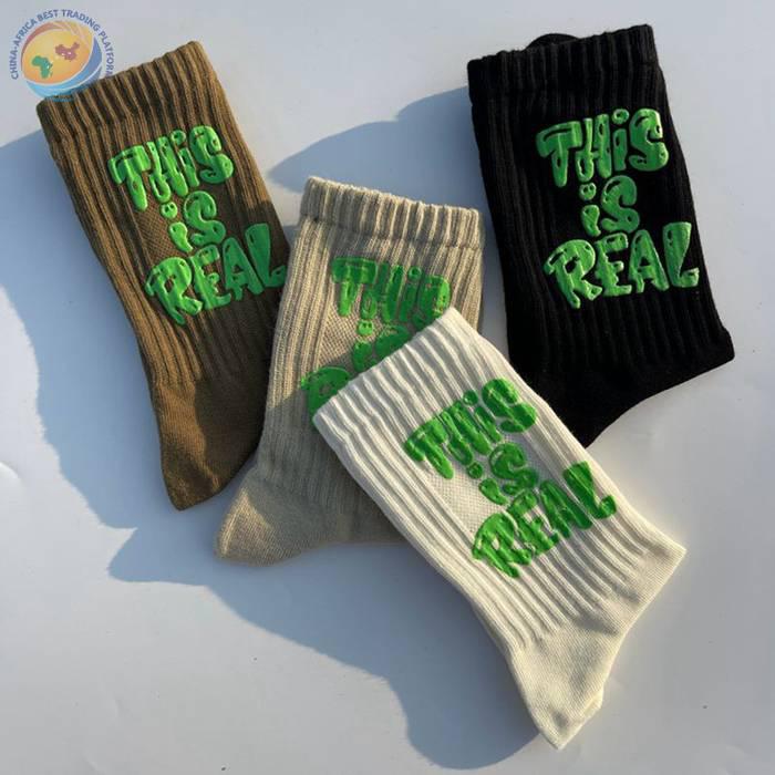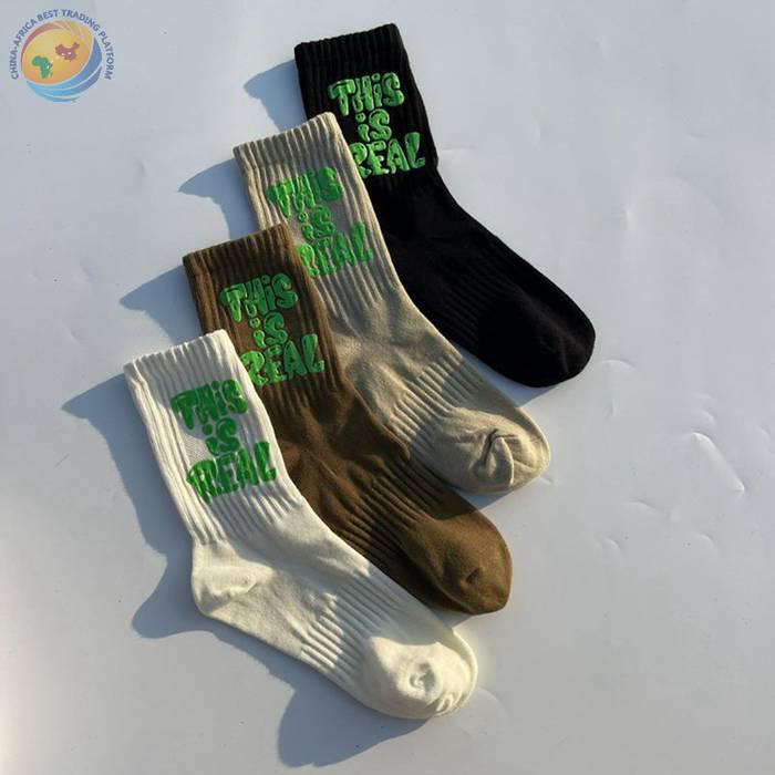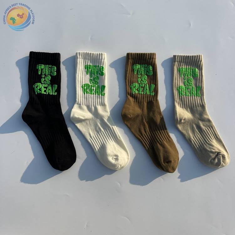印胶字母男女中筒棉袜子 潮ins网红简约运动街头滑板棉袜厂家批发