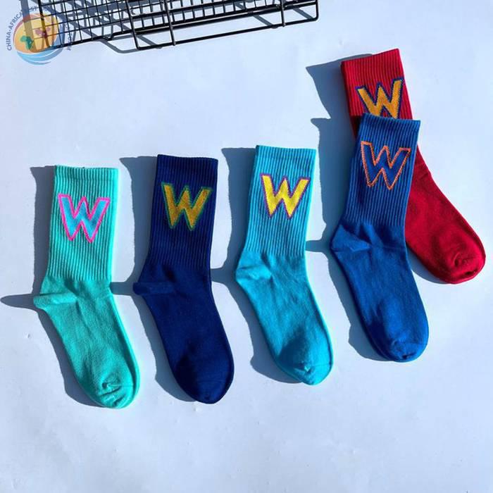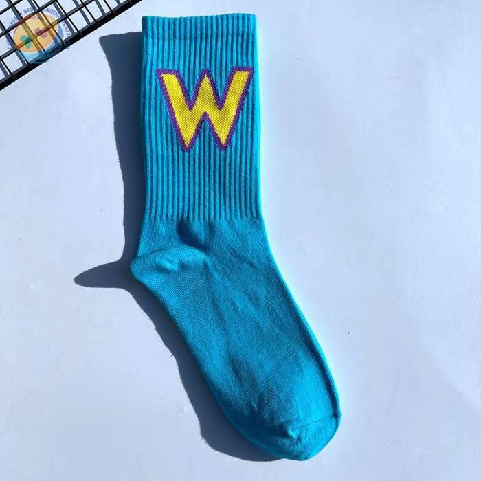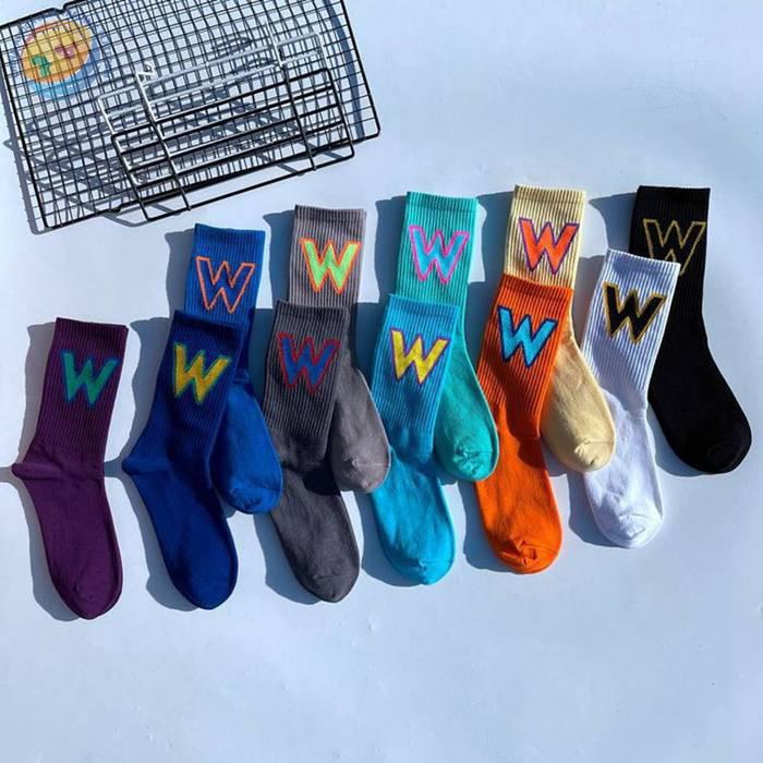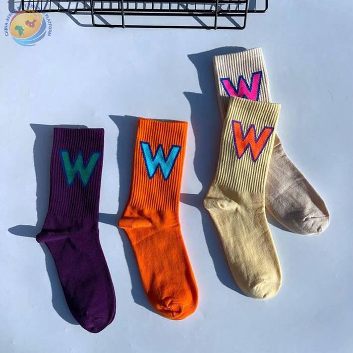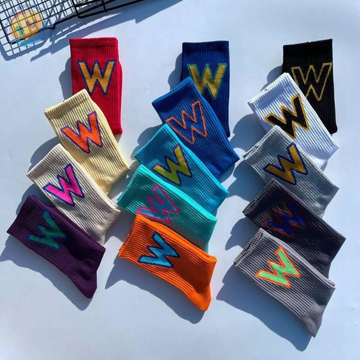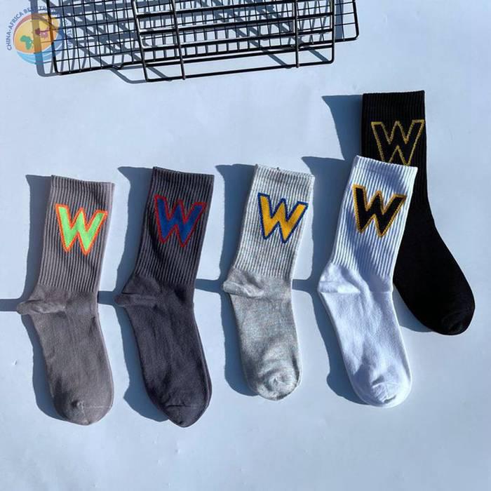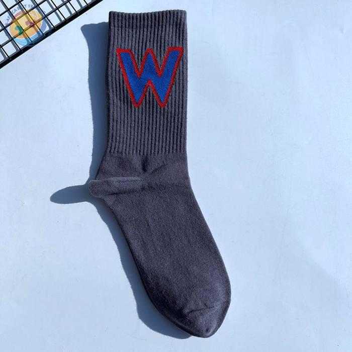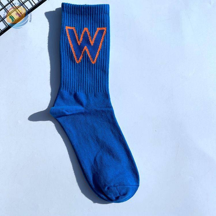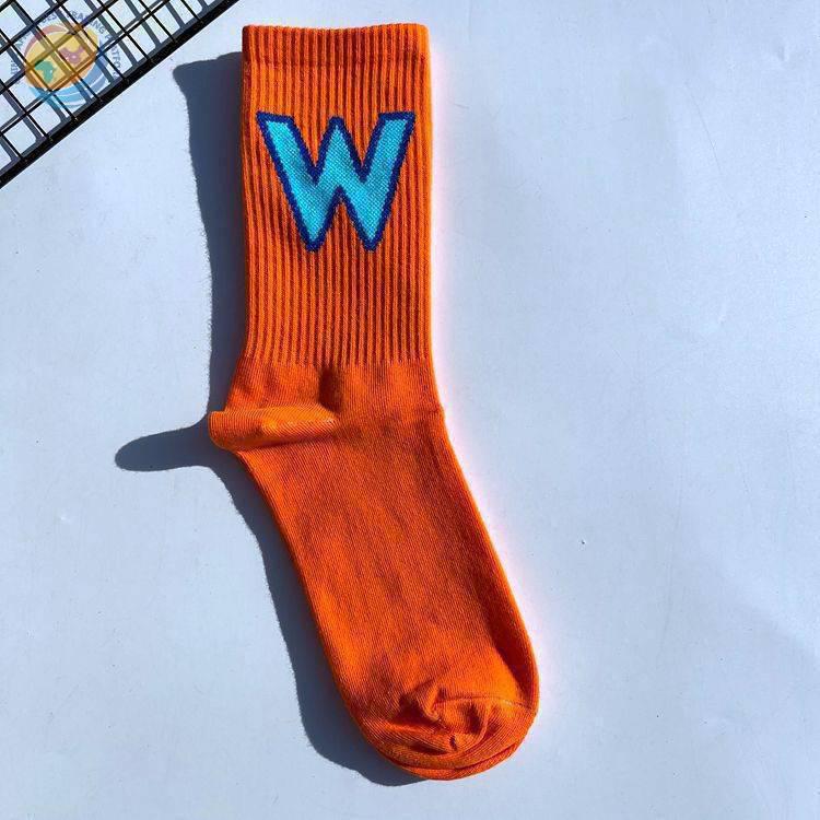 网红大W袜子男女潮欧美街头ins运动嘻哈滑板中筒个性学院风长棉袜