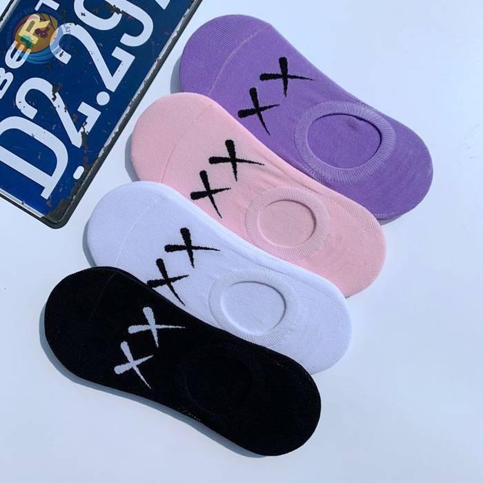 男女浅口袜子春夏潮ins 学院风欧美街头创意休闲短紫白胶棉袜批发
