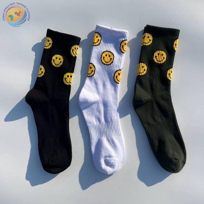 Big size socks all match smiley face movement Instagram net red men midtube street Europe and America hip hop skateboard long cotton socks