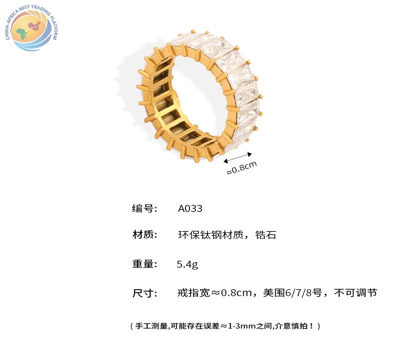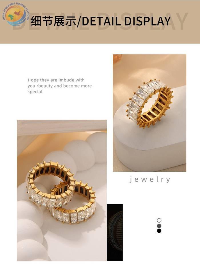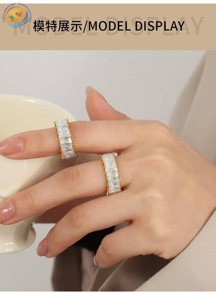 Light luxury fashion personality titanium steel gold plated with zircon design ring
