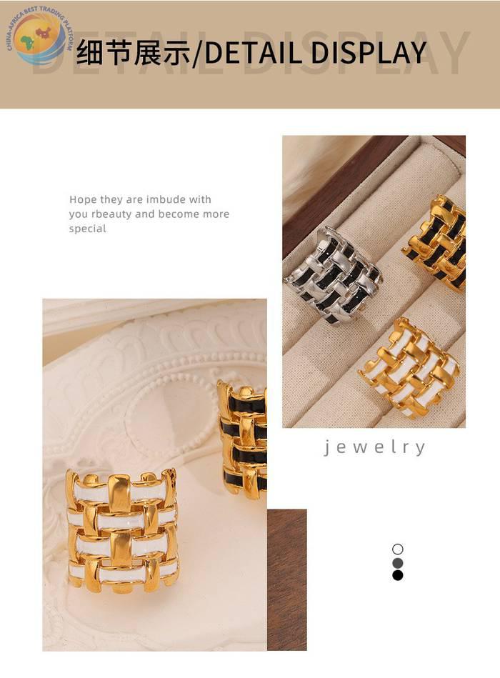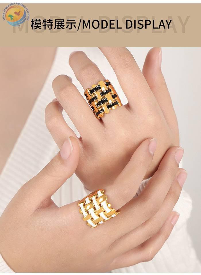 Niche design titanium steel gold plated enamel braided irregular ring
