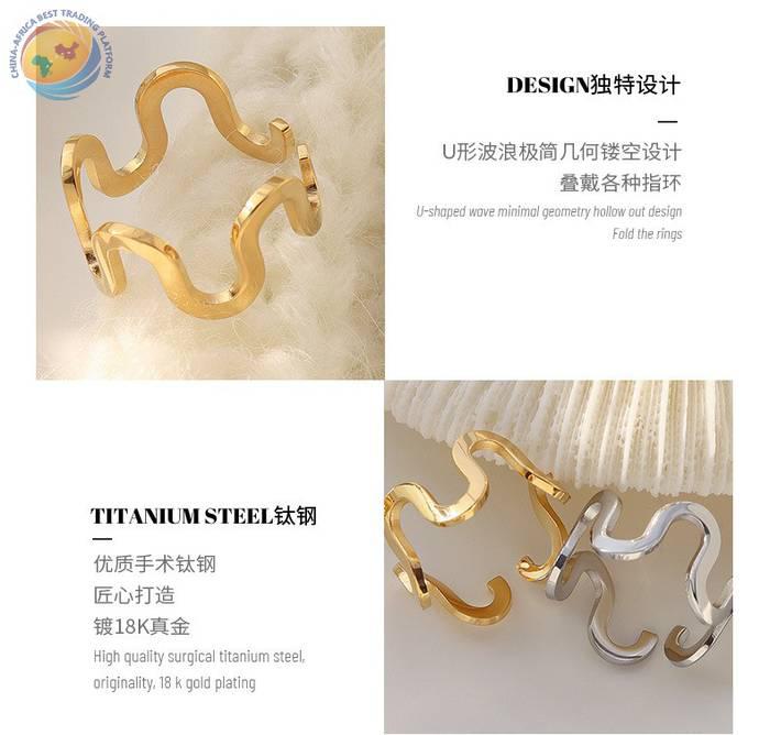 Europe and the United States ins cold wind exaggerated temperament sense U-shaped wave opening ring