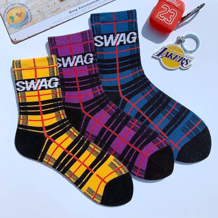 韩国INS潮牌原宿风紫蓝黃中筒棉袜