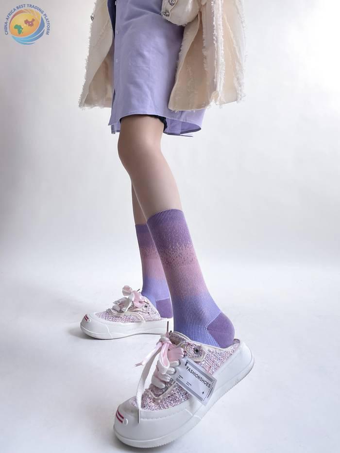 双针扎染渐变色个性男女情侣纯棉中筒袜子