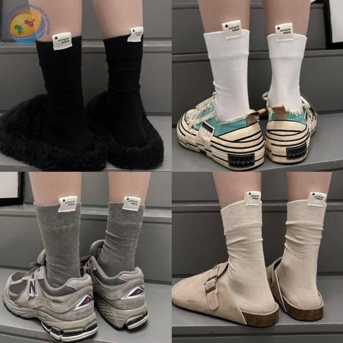日系女袜ins马卡龙纯色潮流中筒棉袜