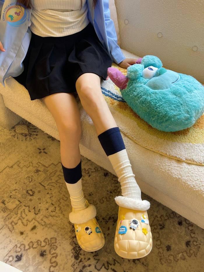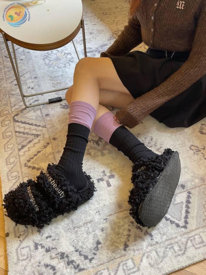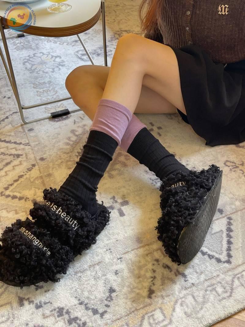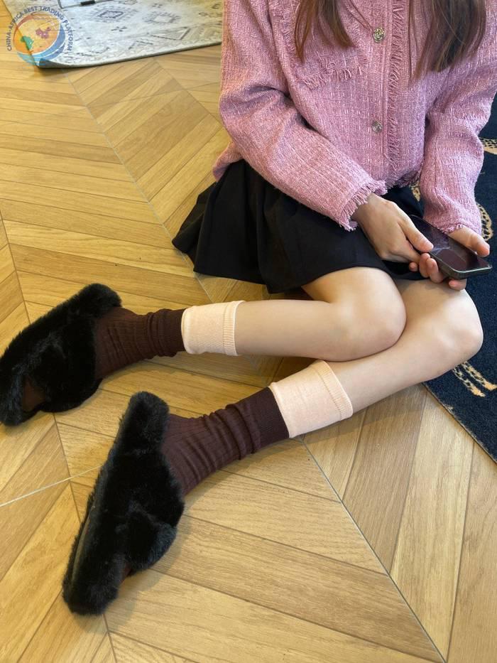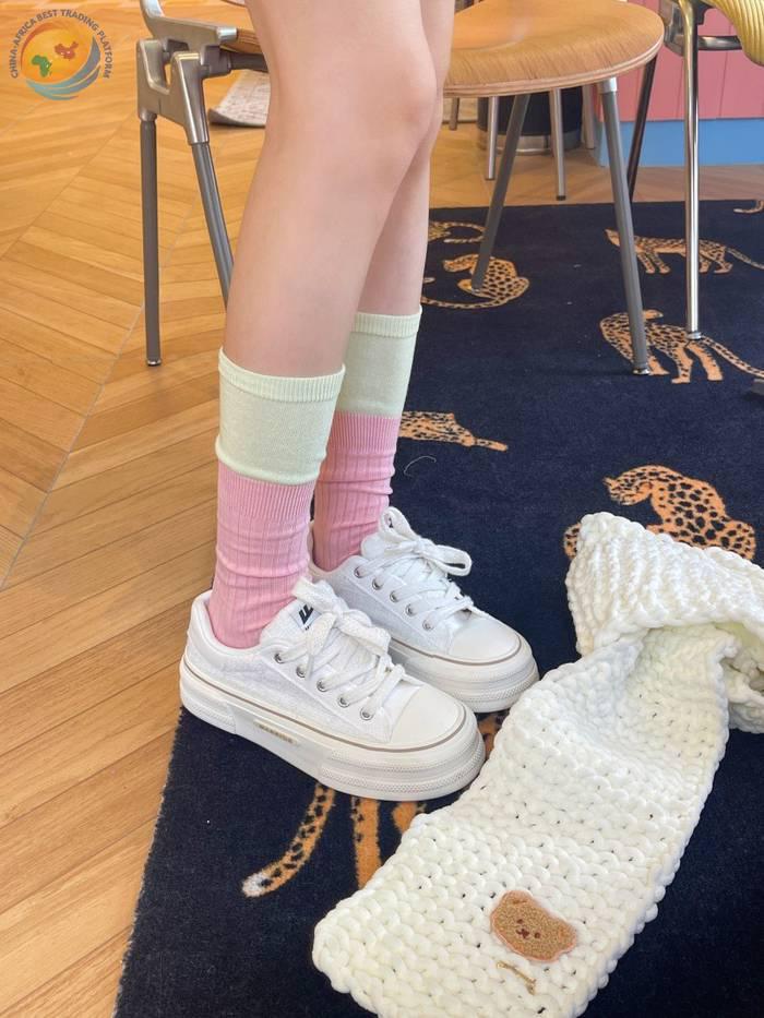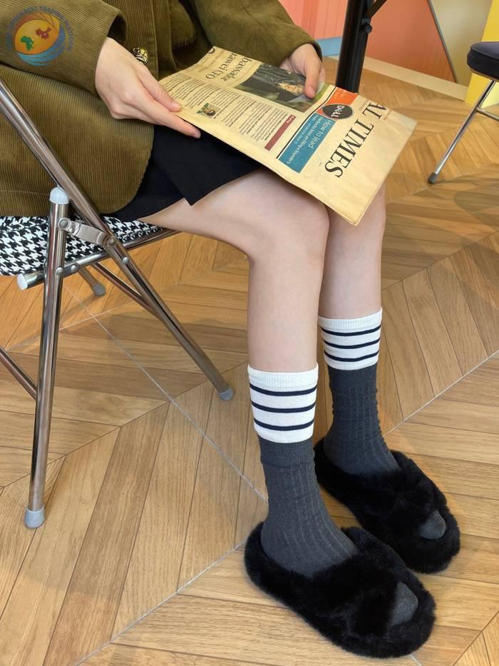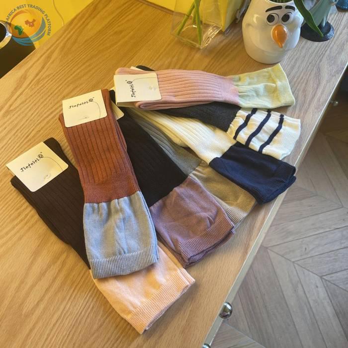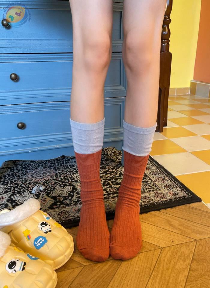 ins韩国东大门女网红潮流假两件撞色小腿袜