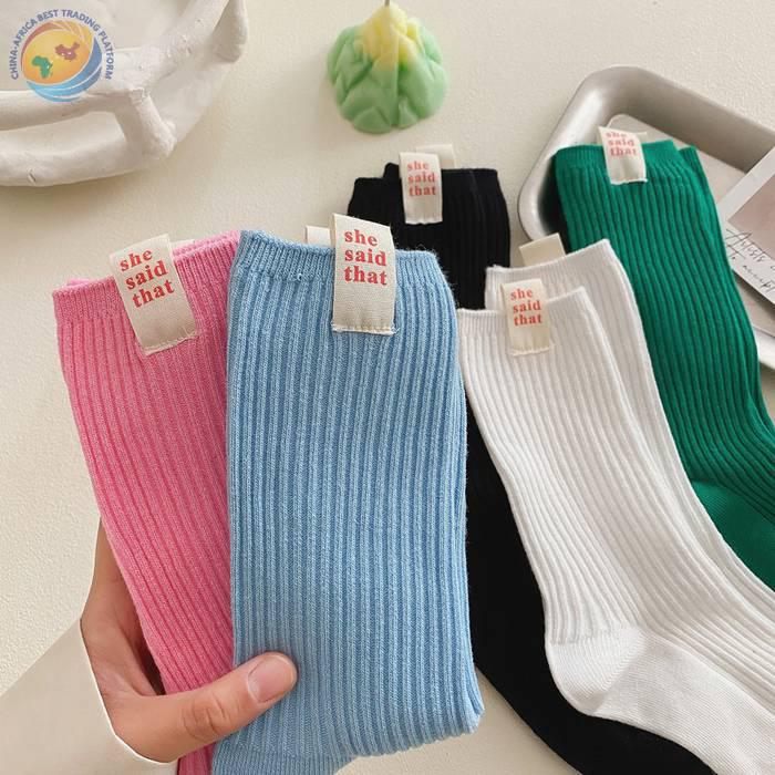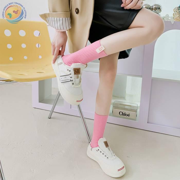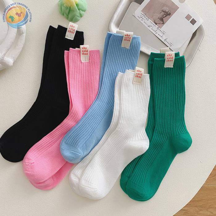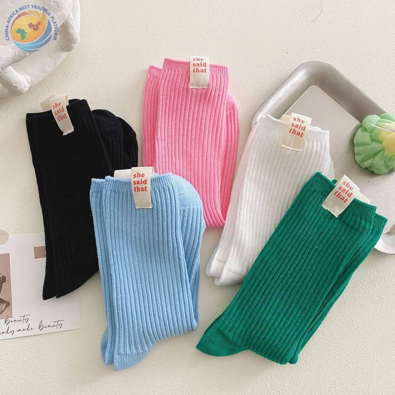 韩国潮牌she字母布标双针甜美中筒袜子男女
