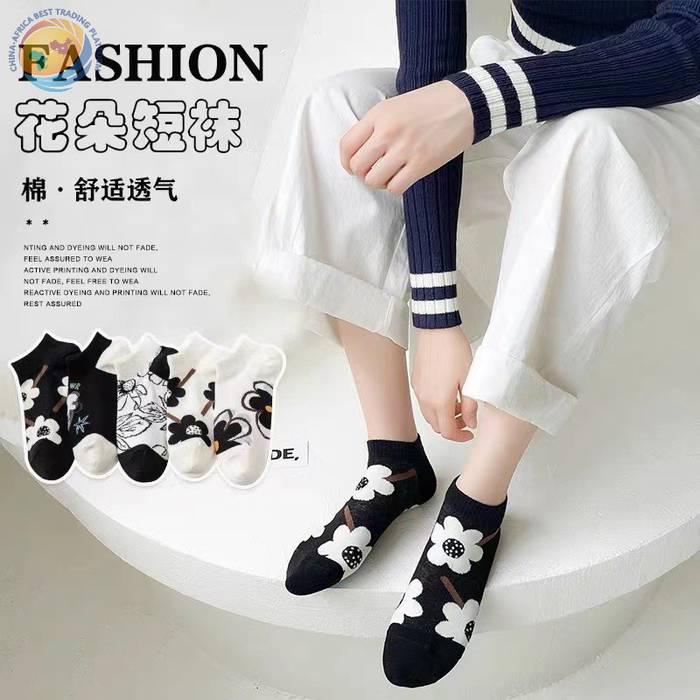 韩国袜子夏天薄女百搭小花船袜
