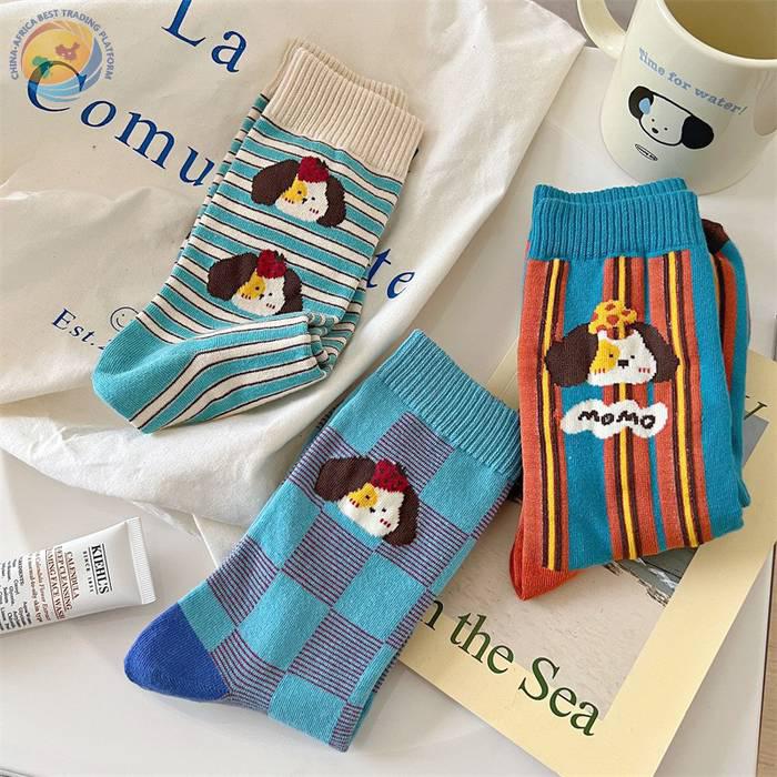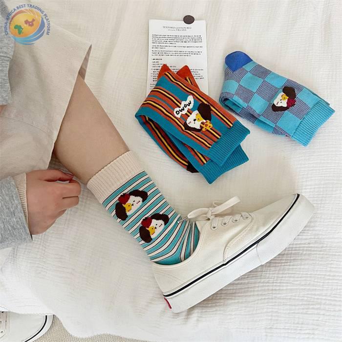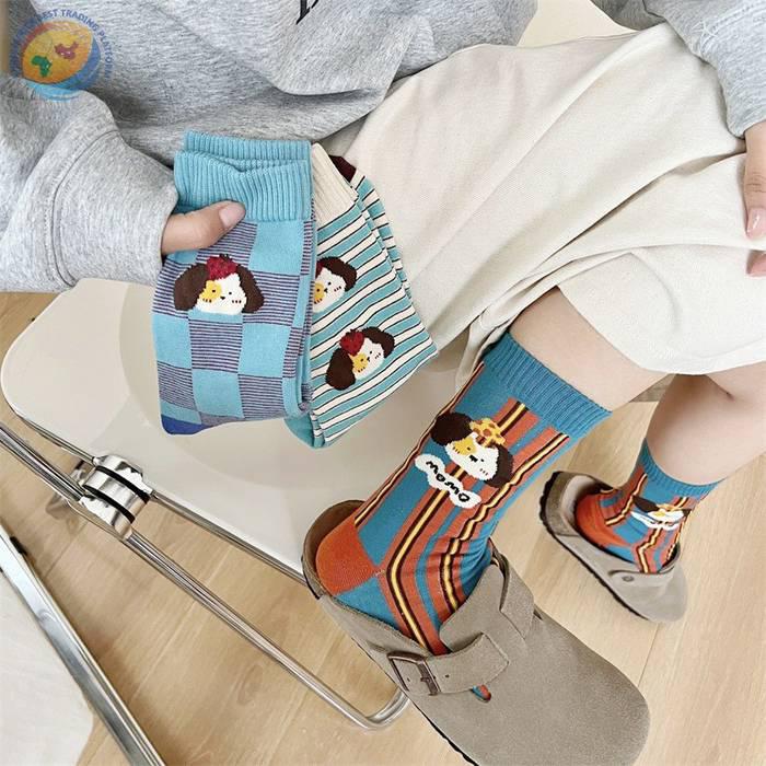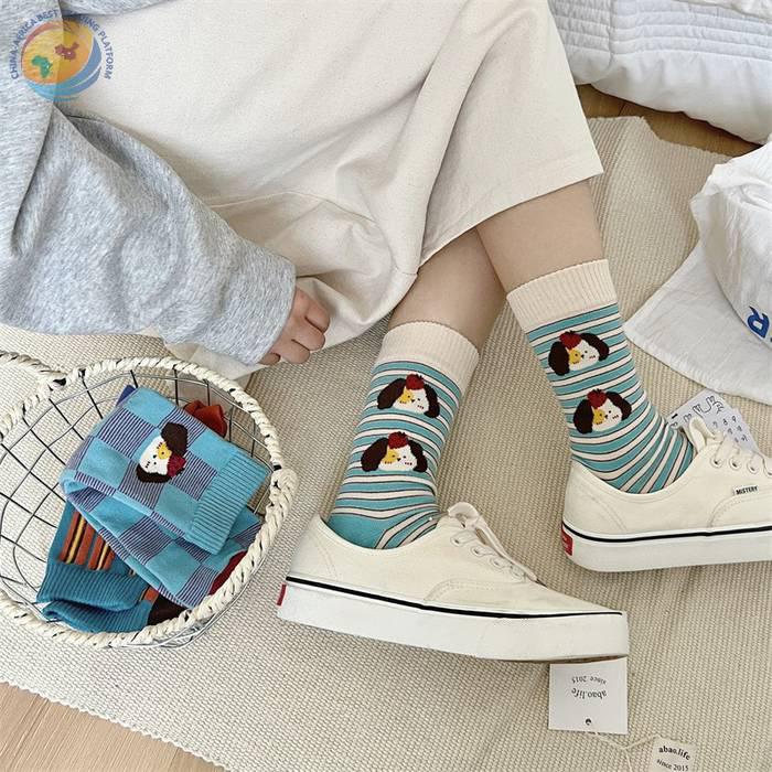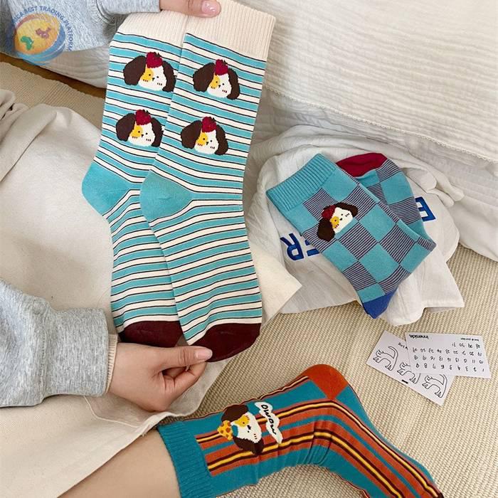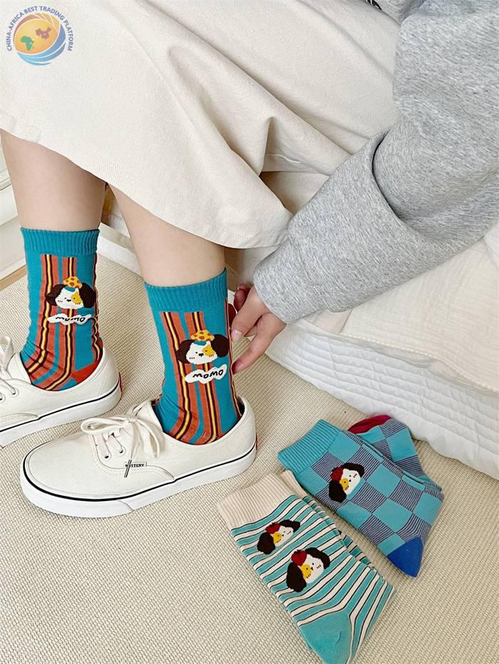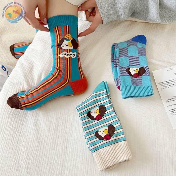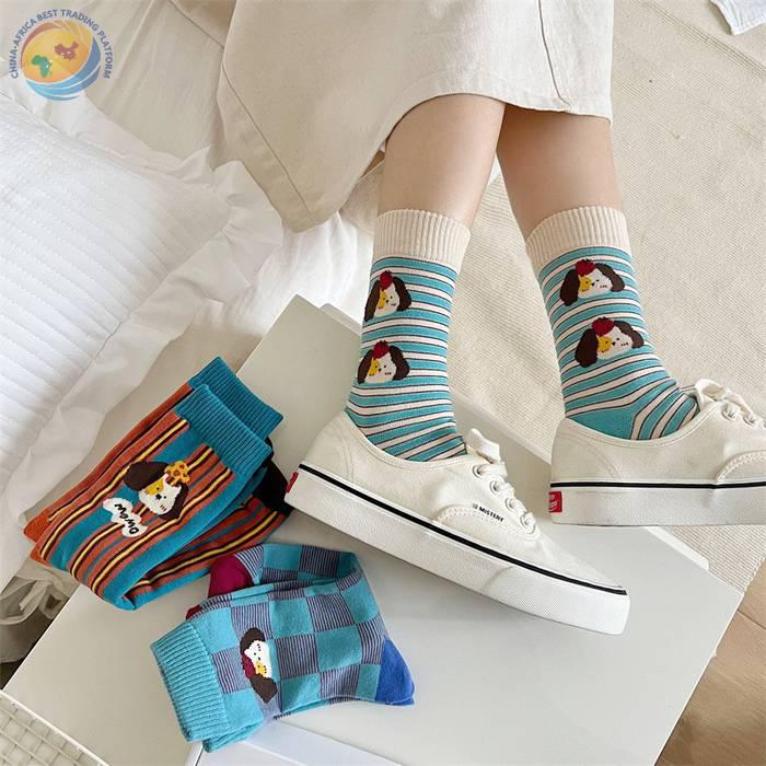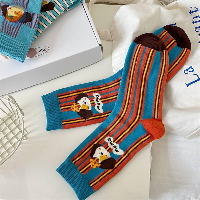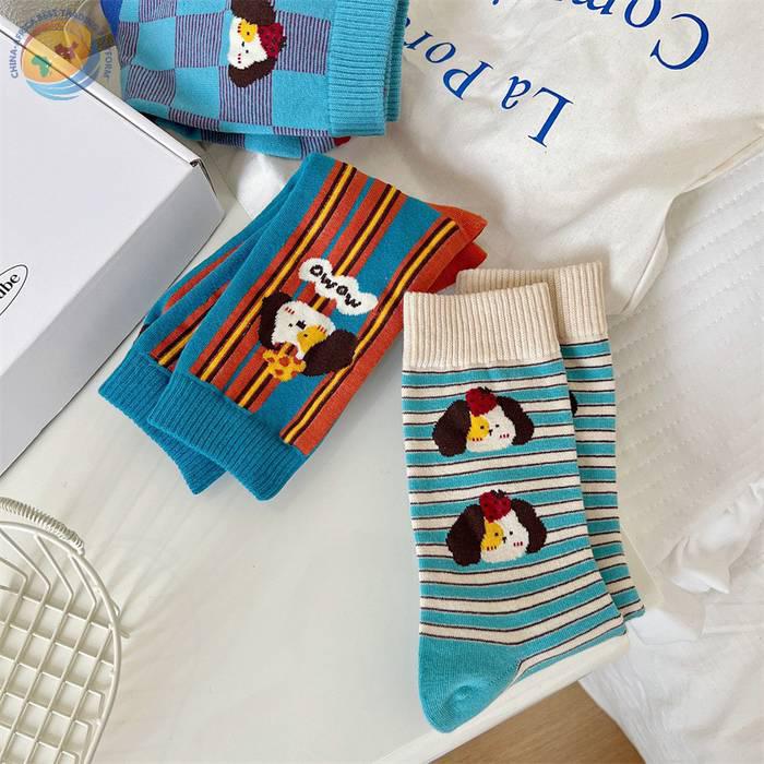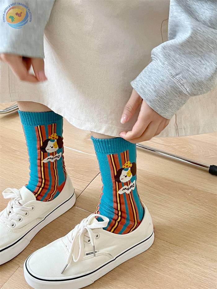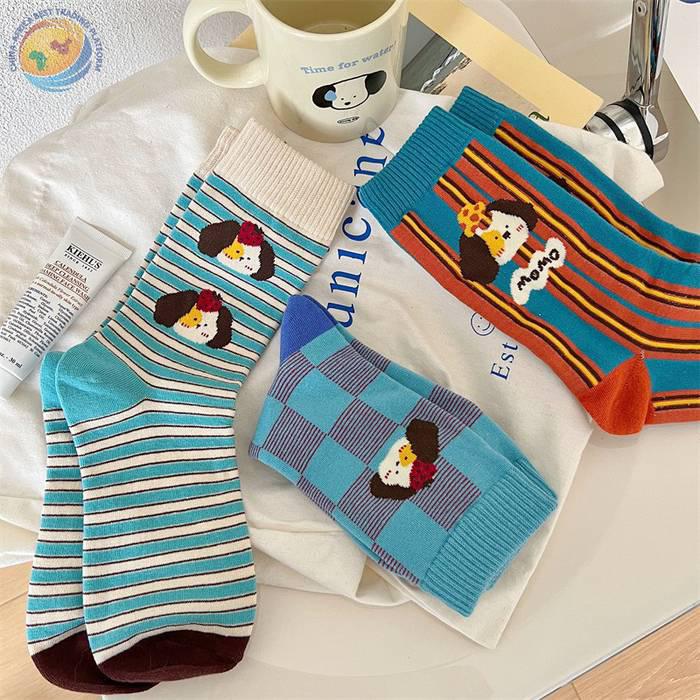 袜子女可爱卡通条纹中筒袜纯棉长袜ins潮