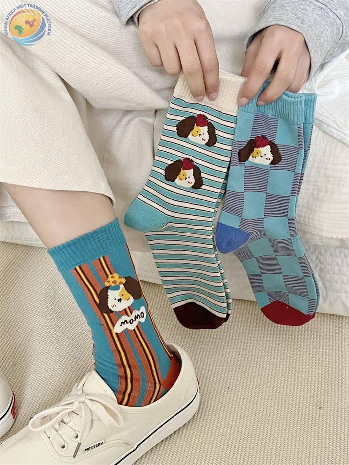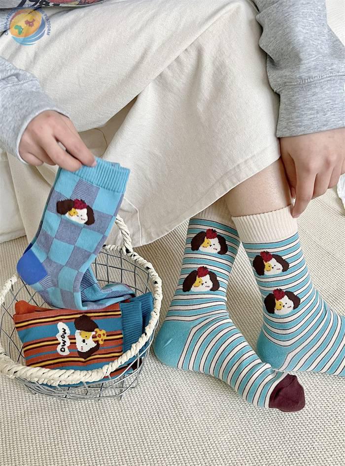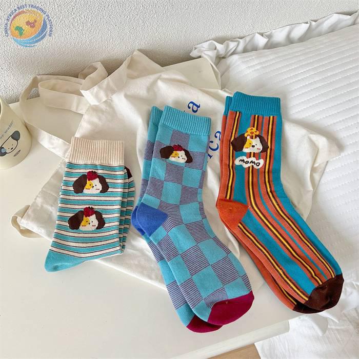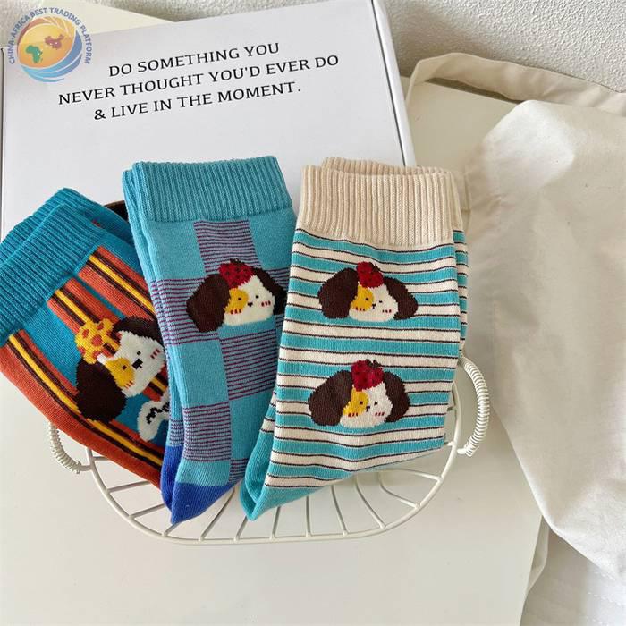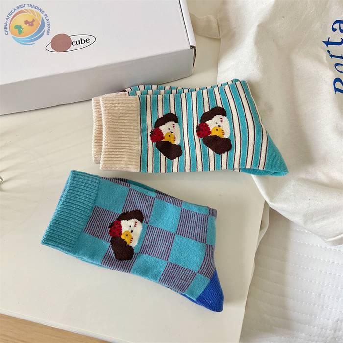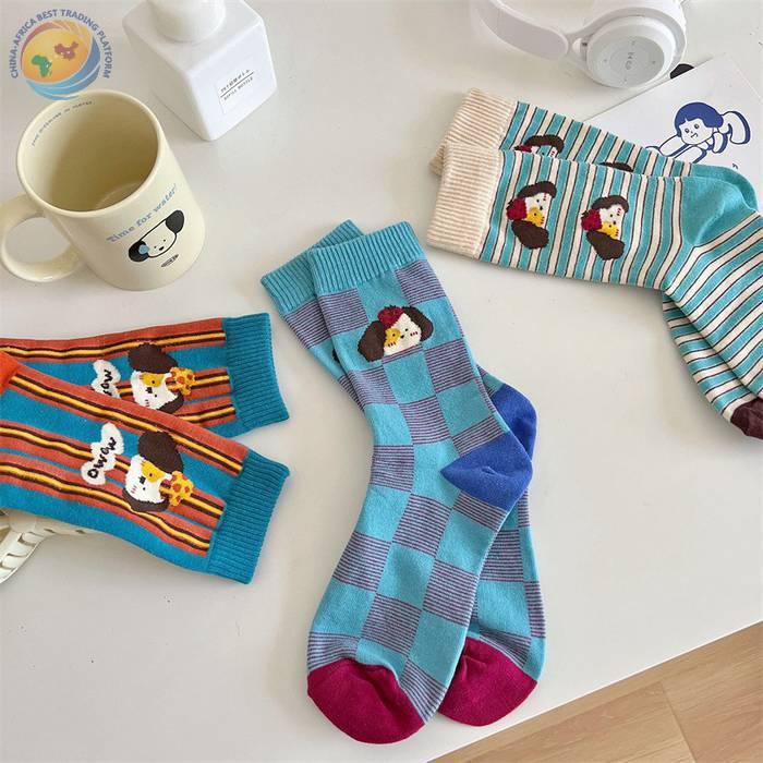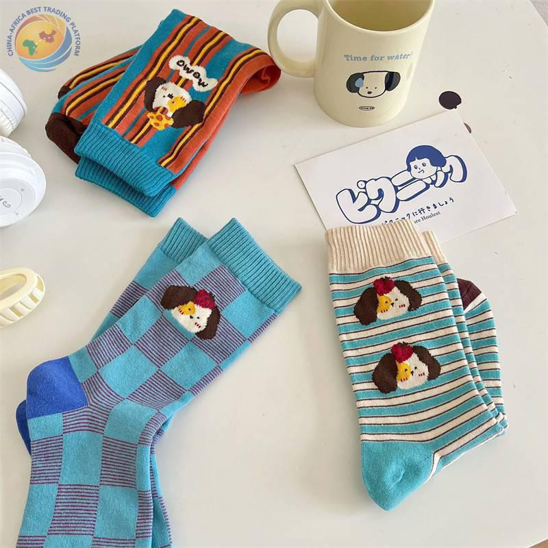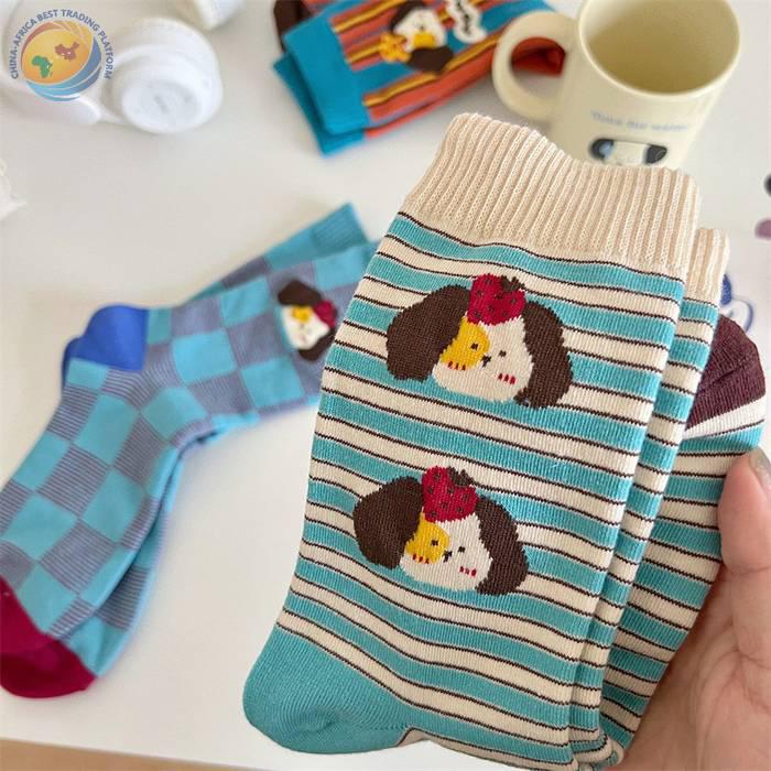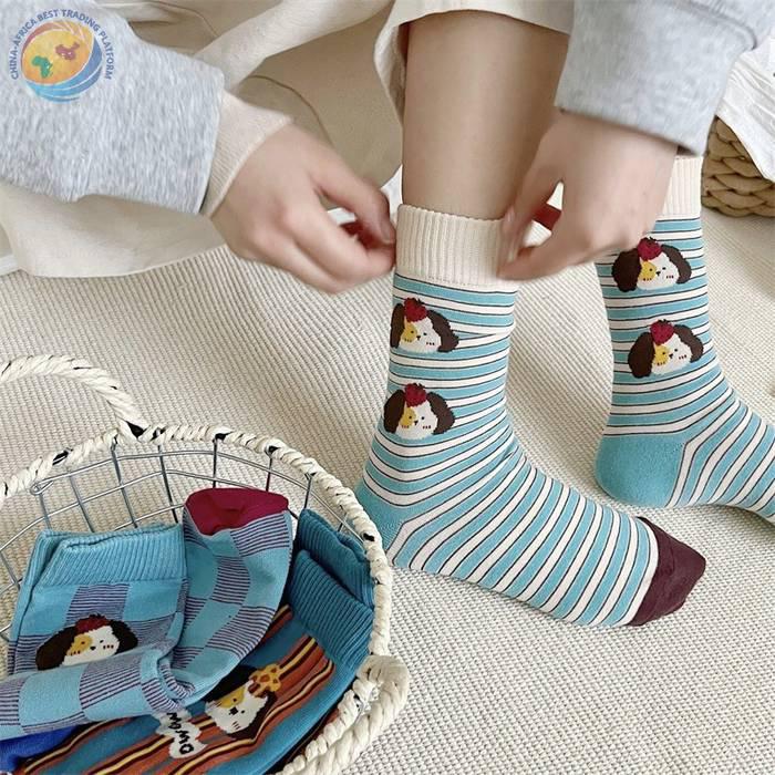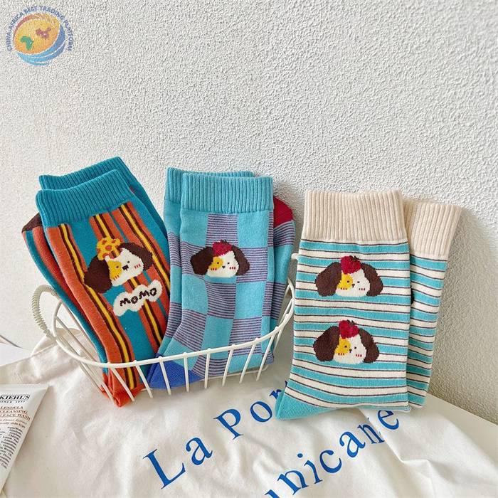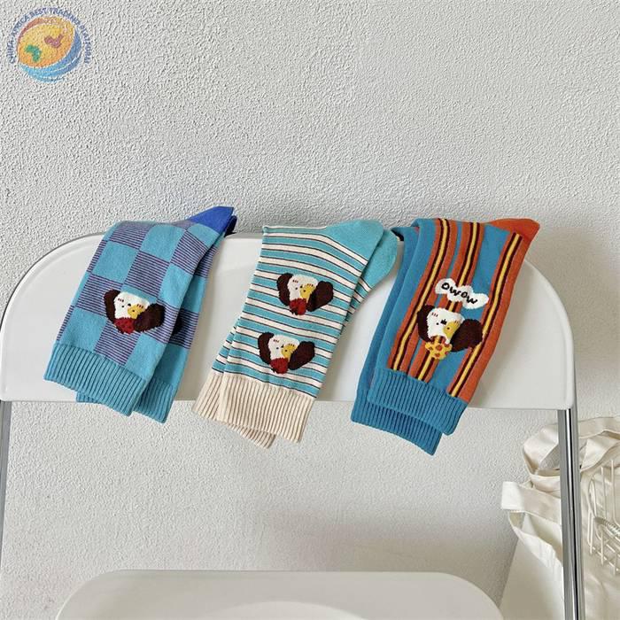 袜子女可爱卡通条纹中筒袜纯棉长袜ins潮