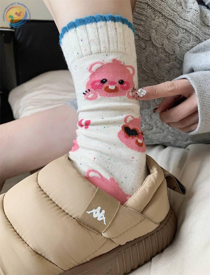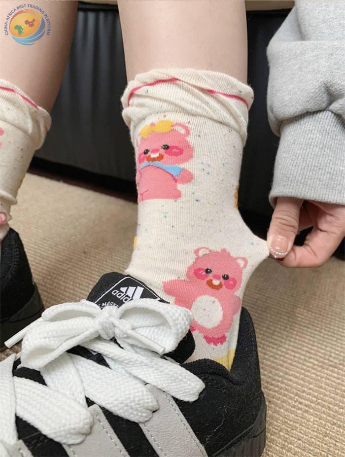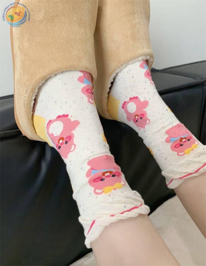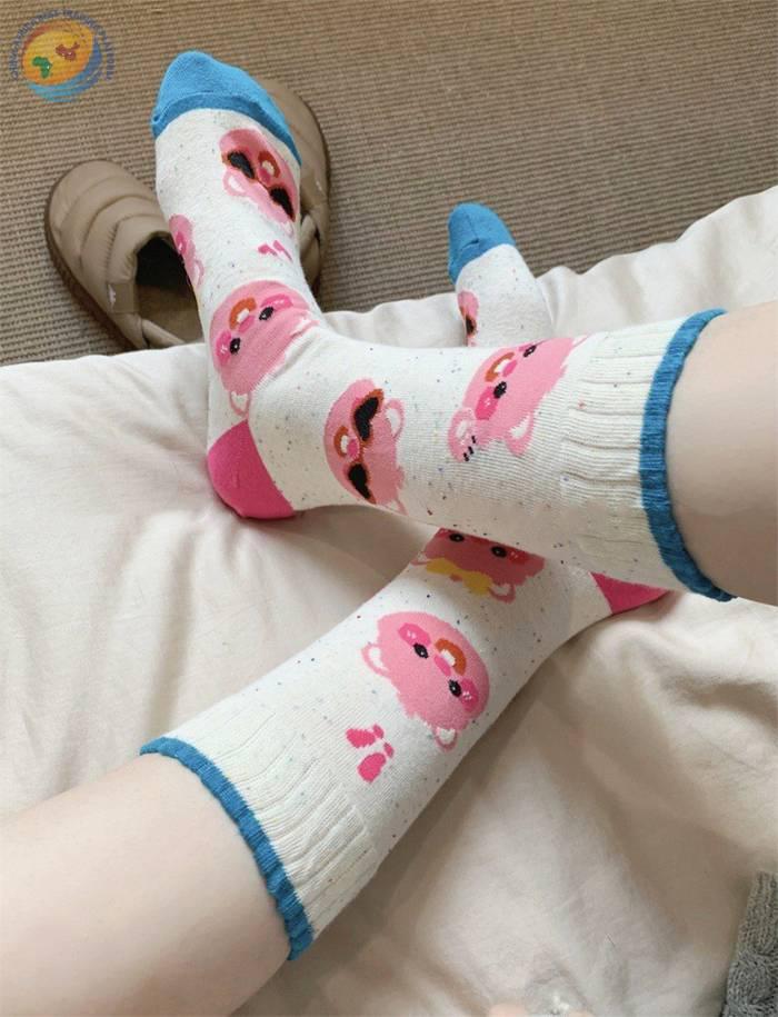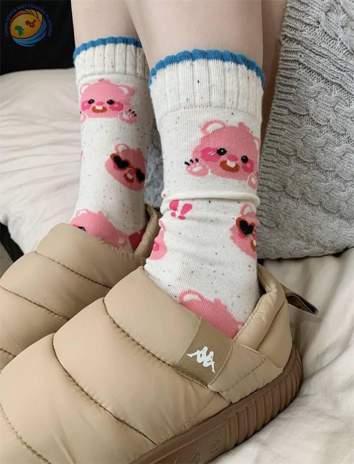 小海狸袜子卡通纯棉中筒袜可爱露比堆堆袜
