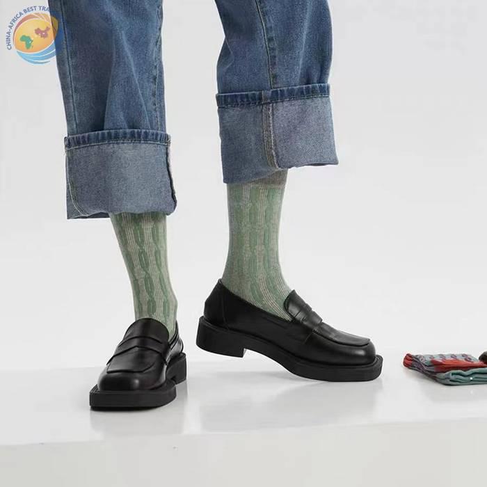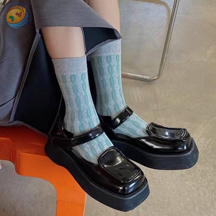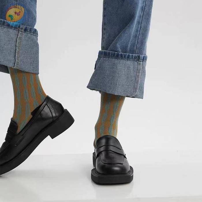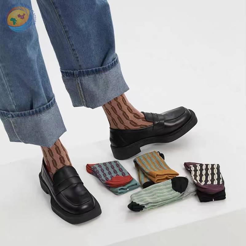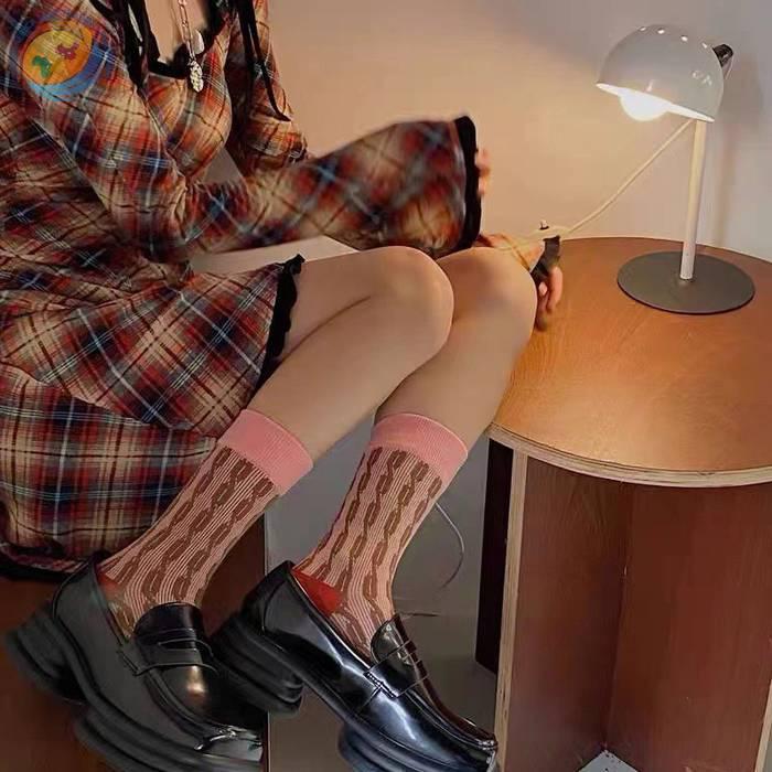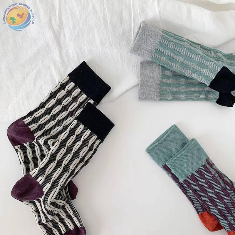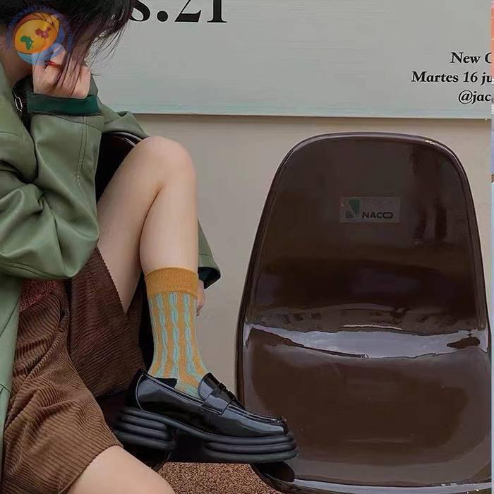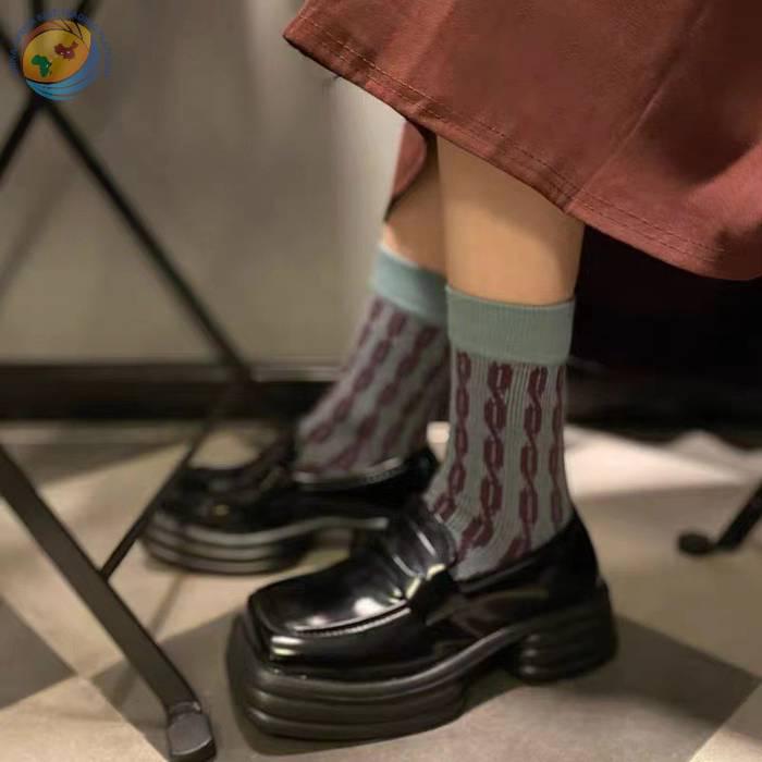 撞色麻花立体浮雕女士复古风棉质中筒棉袜