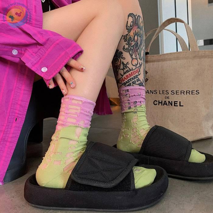 Summer thin color patchwork broken beggar socks hollow socks for men and women in the tube socks network red glass silk crystal stockings