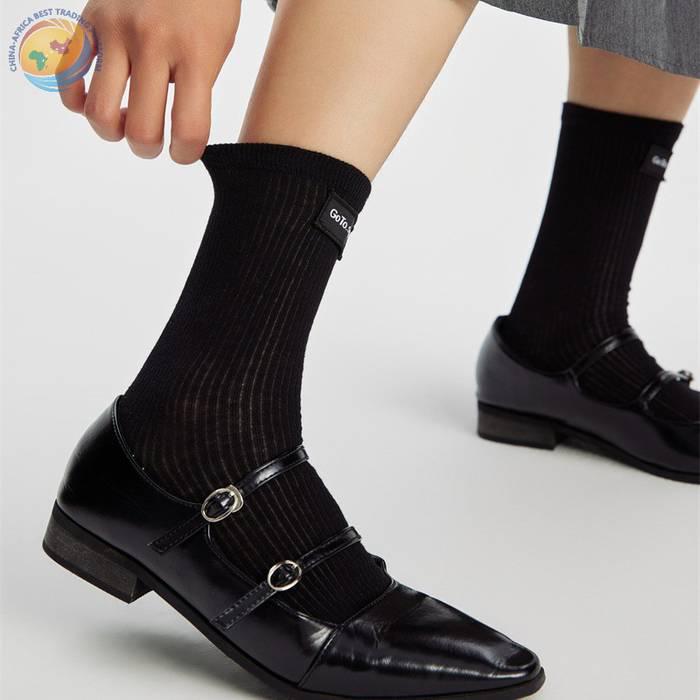 春夏薄款女袜欧货个性布标抽条纯色袜子ins芭蕾风竖条纯棉堆堆袜