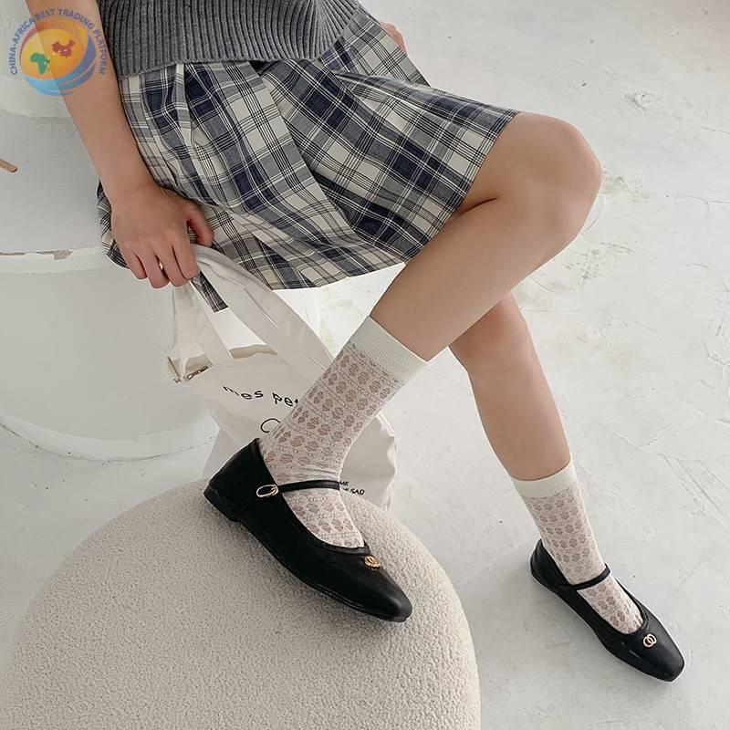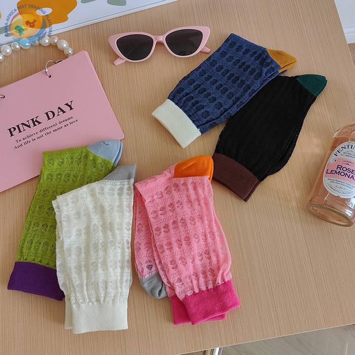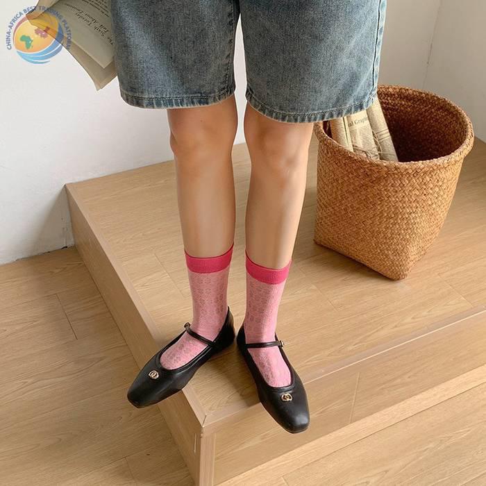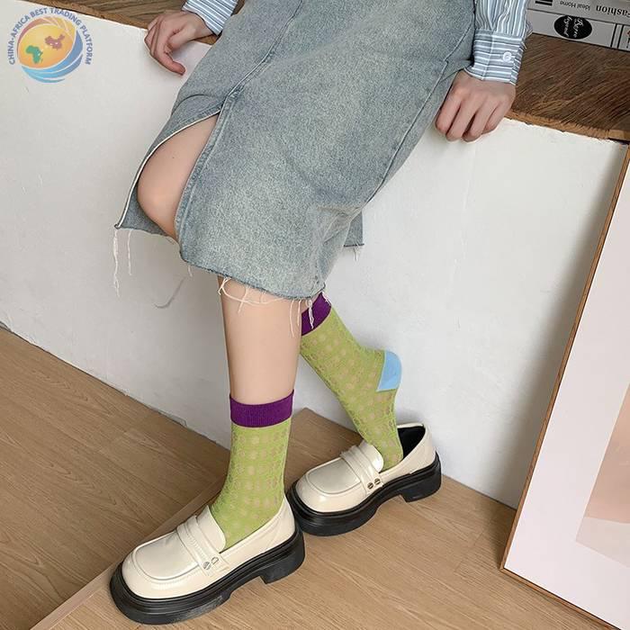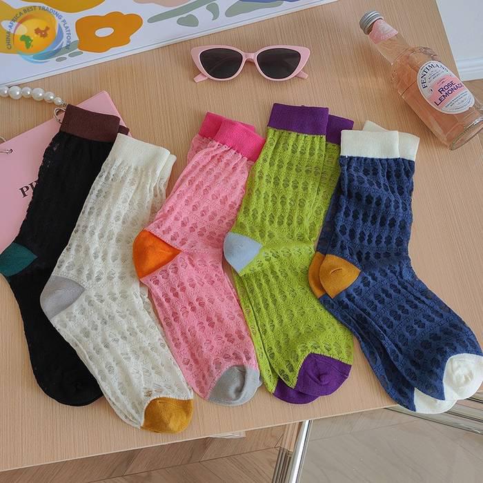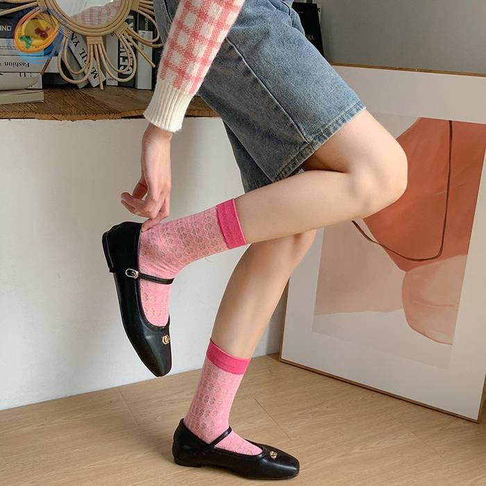 袜子女中筒袜薄款夏季拼色复古水晶丝袜ins小红书款玻璃丝堆堆袜