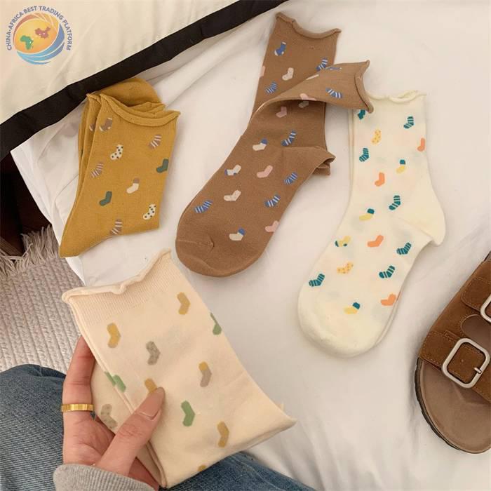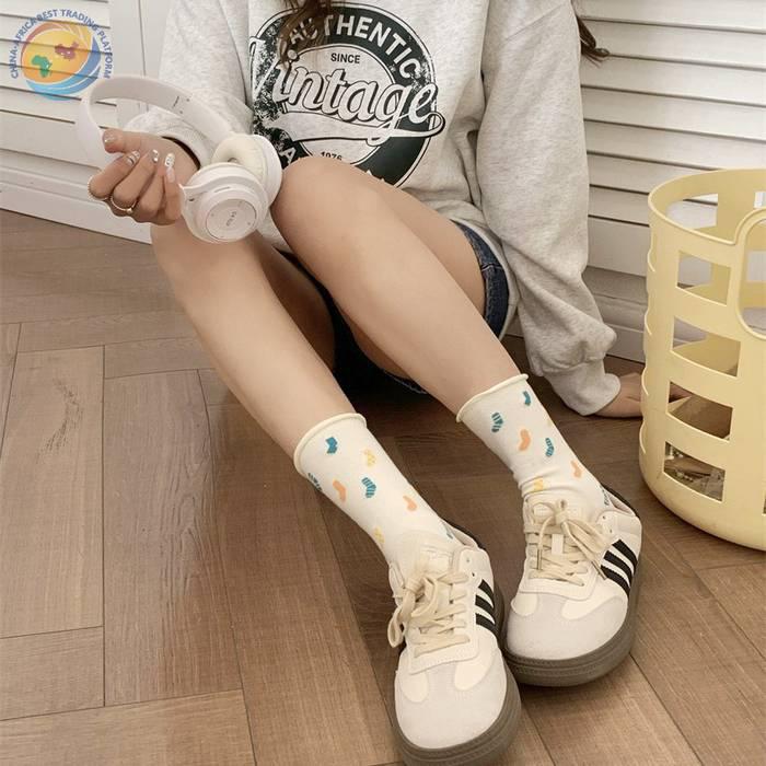 春夏季卷边袜子女中筒袜ins潮日系网红小红薯同款韩国东大门女袜
