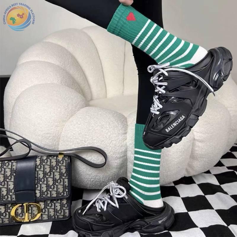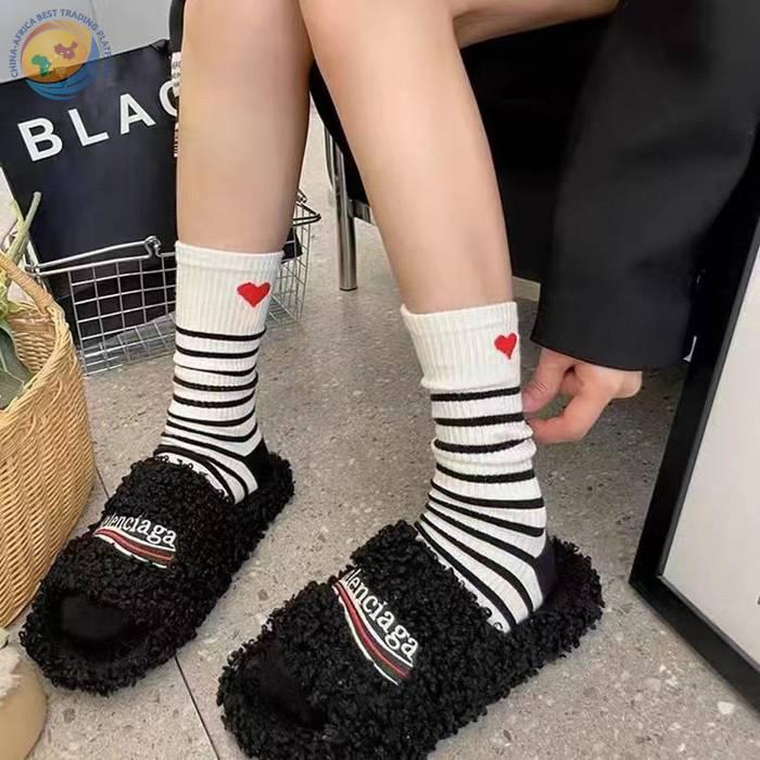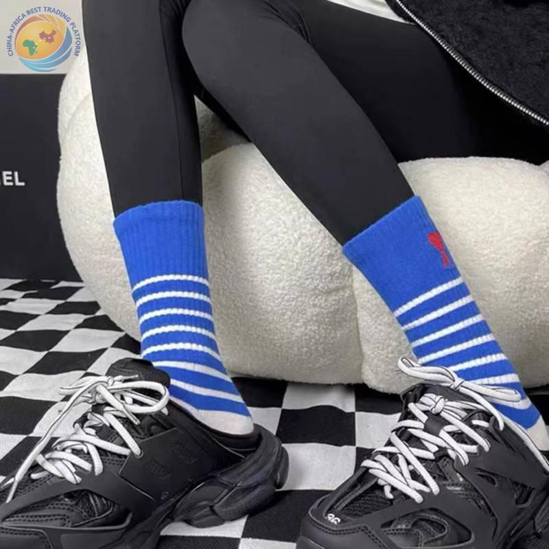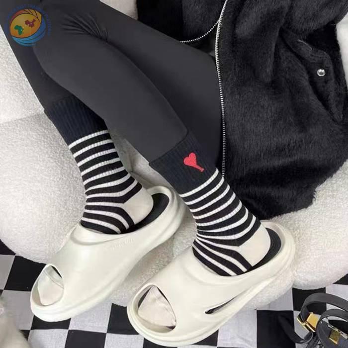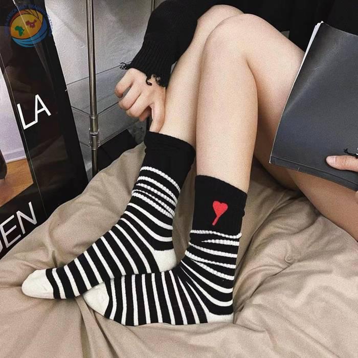 日系百搭潮牌红桃爱心条纹情侣袜子男女纯棉街头运动中筒袜潮袜