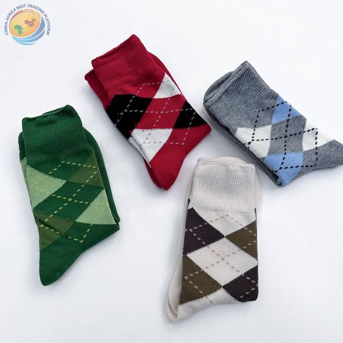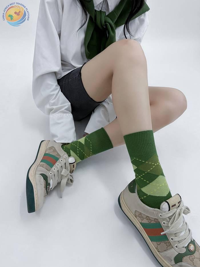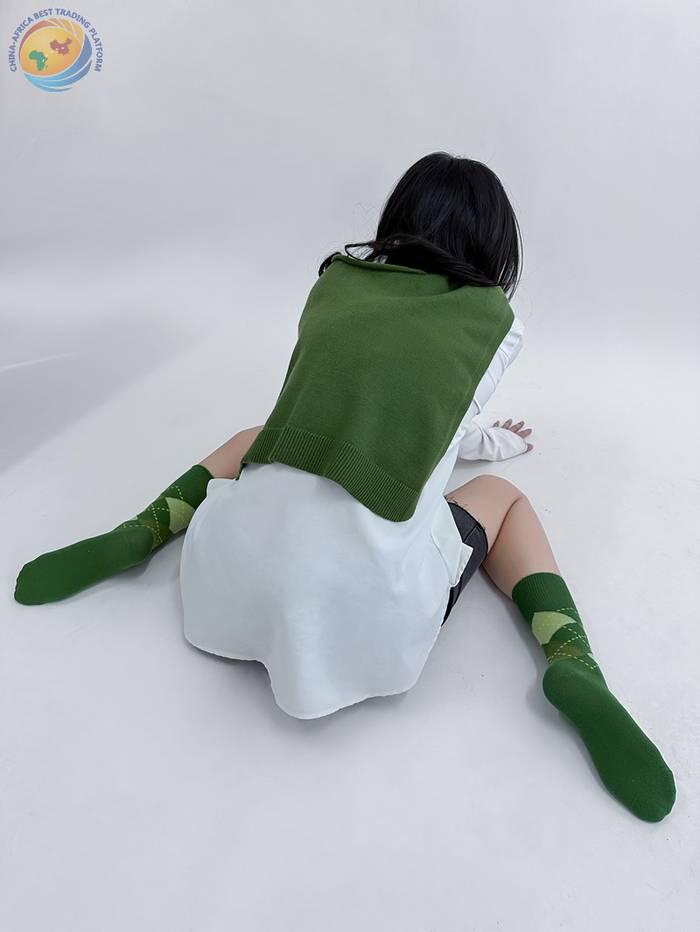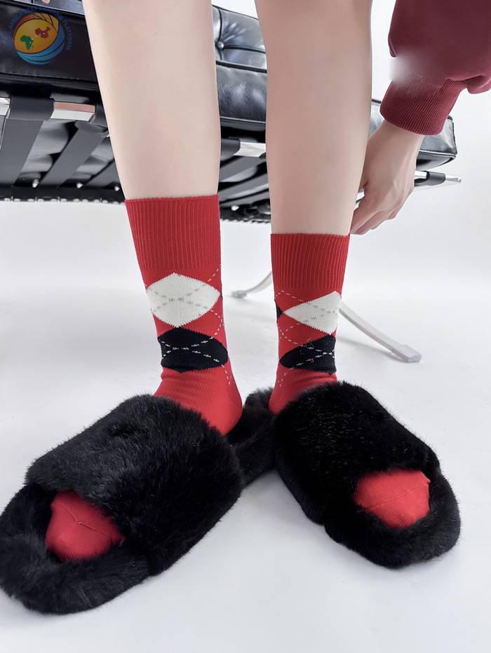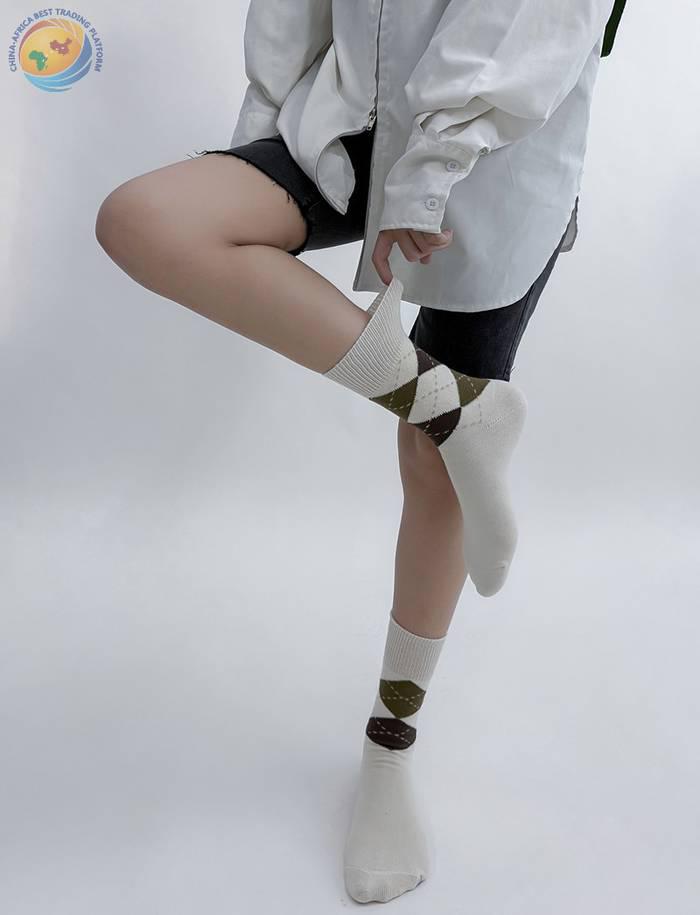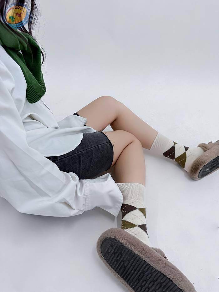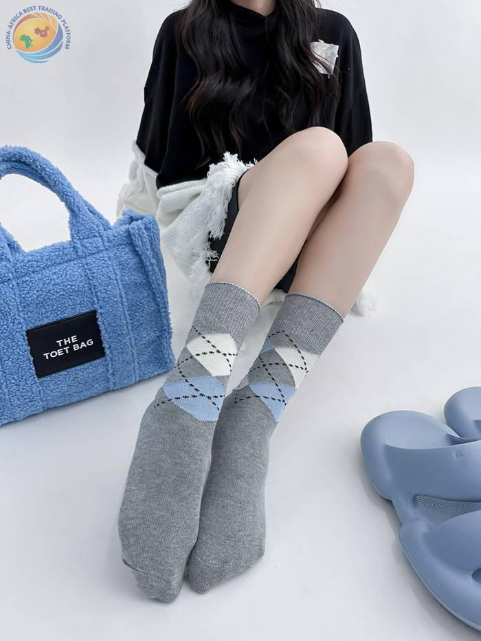 学院少女菱格拼接袜子女秋冬ins撞色日系