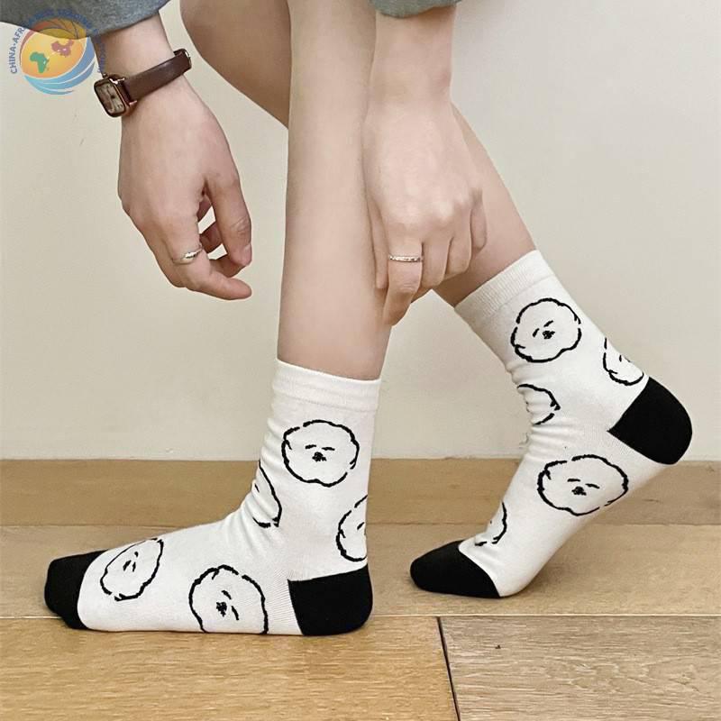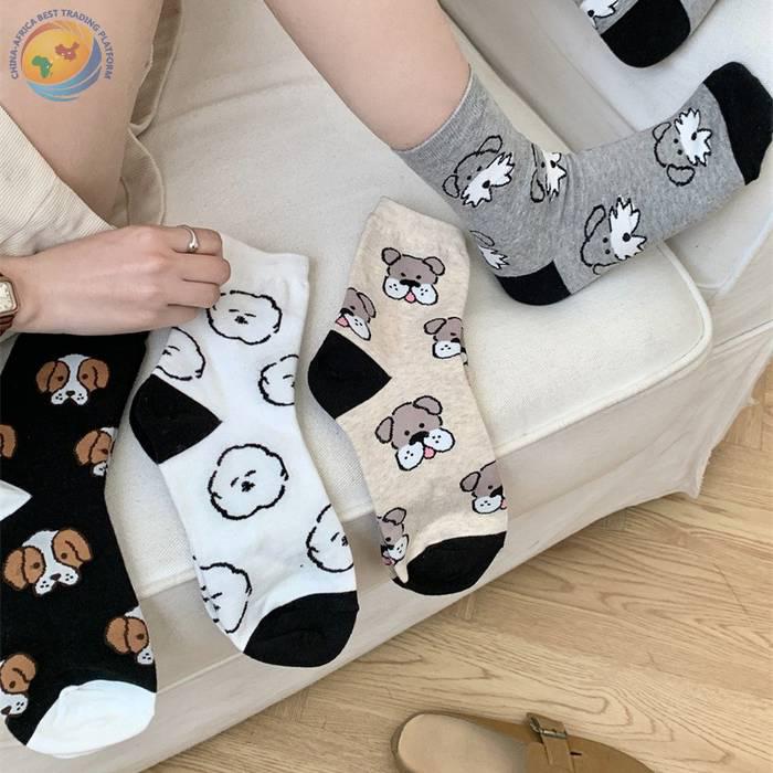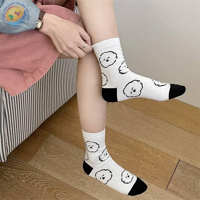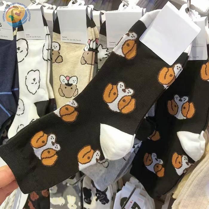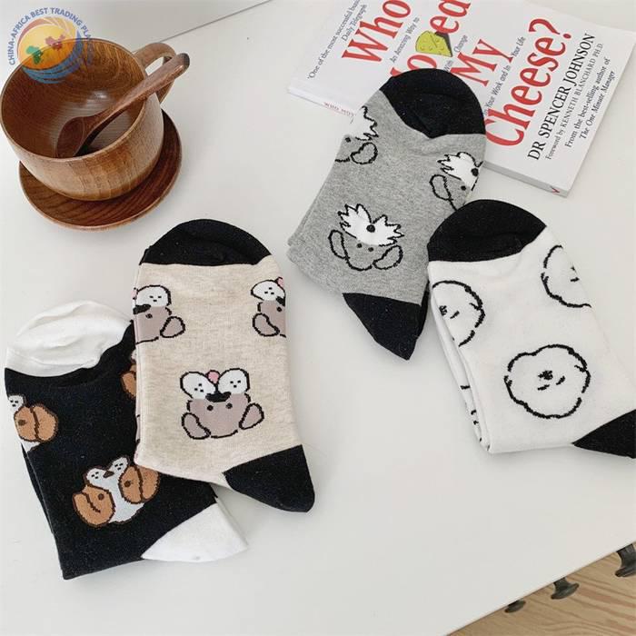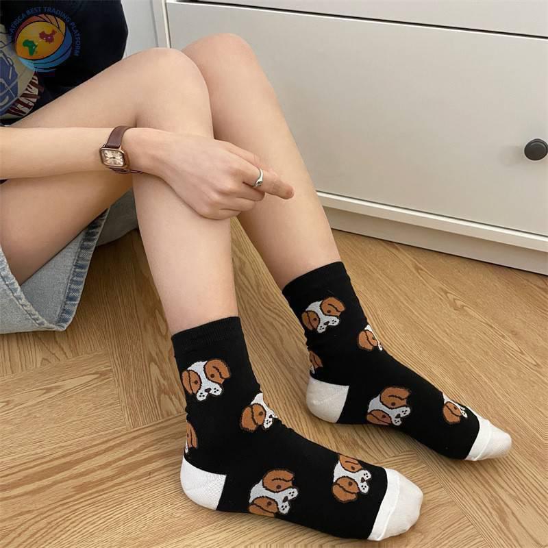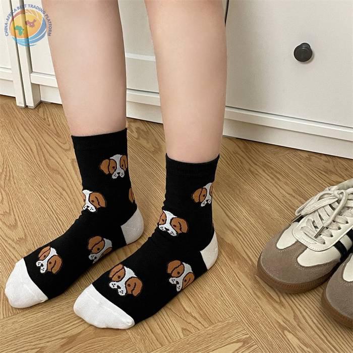 韩国东大门袜子可爱动物狗狗纯棉袜子日系少女袜拼色后跟中筒袜子
