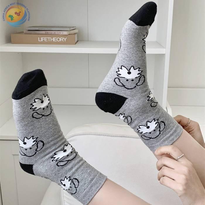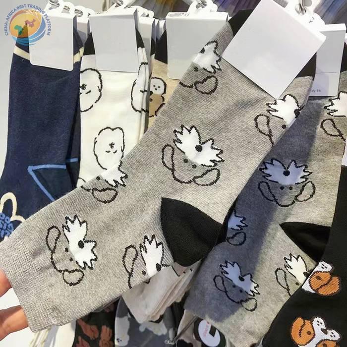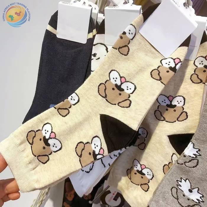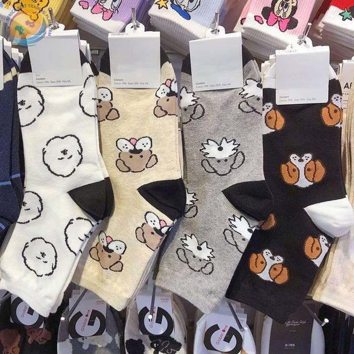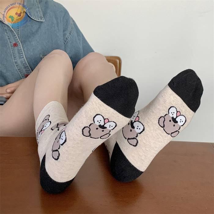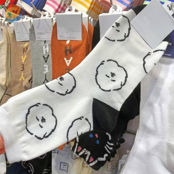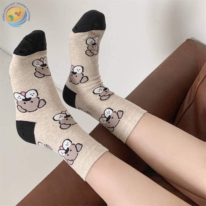 韩国东大门袜子可爱动物狗狗纯棉袜子日系少女袜拼色后跟中筒袜子