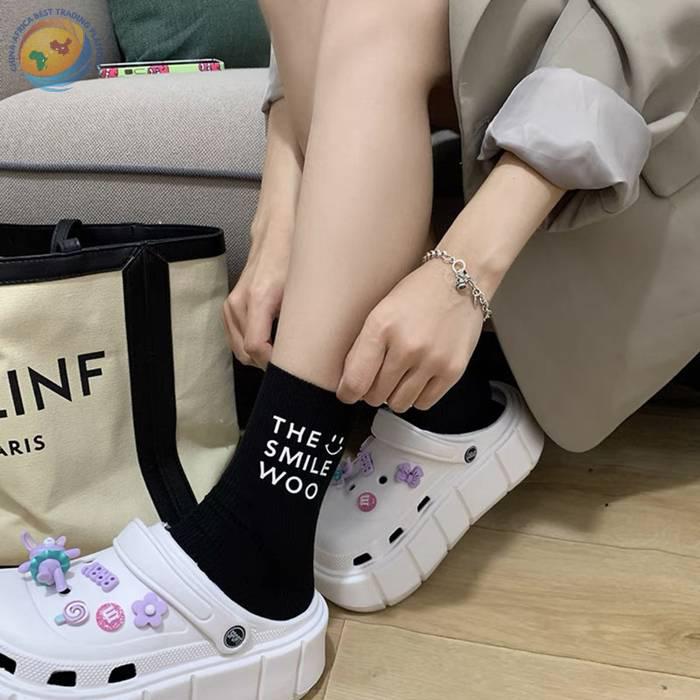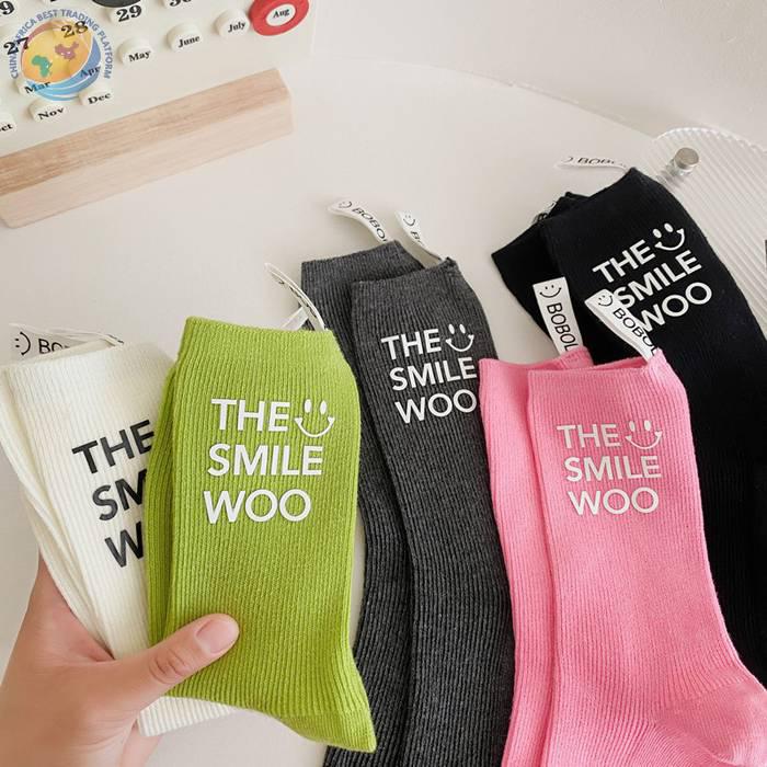 New ins style European personality socks men's and women's midtube socks net red smiley face letter ribbon solid color cotton socks