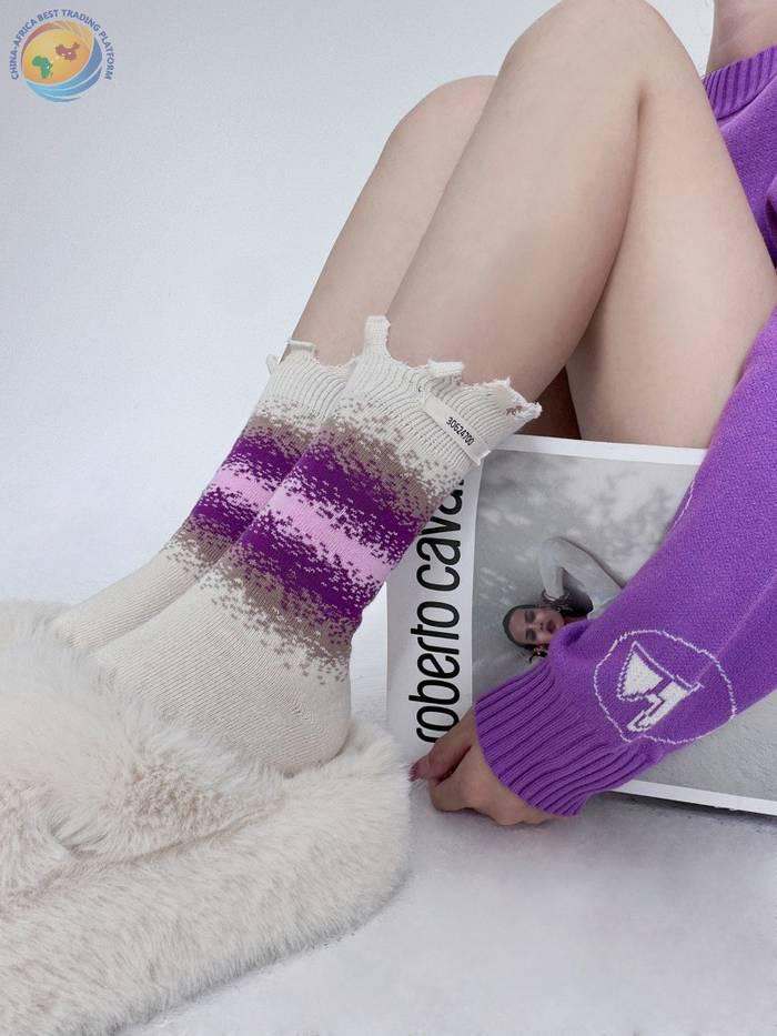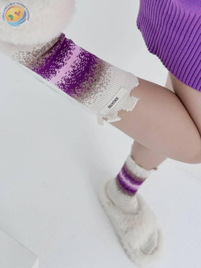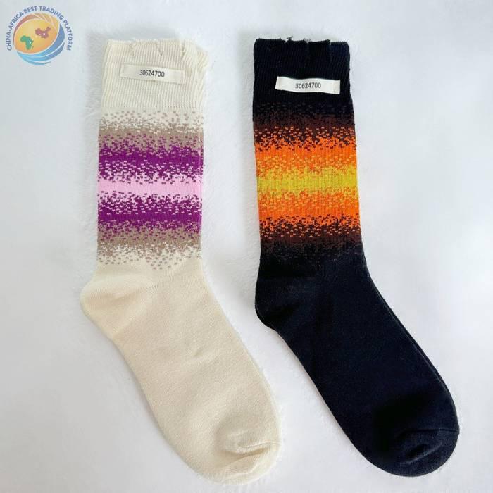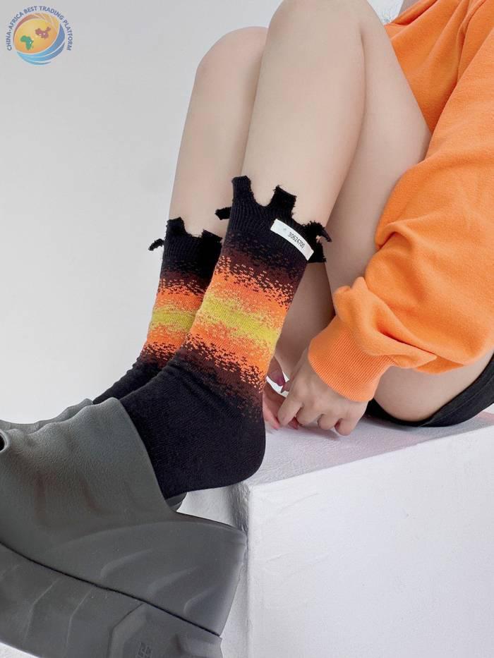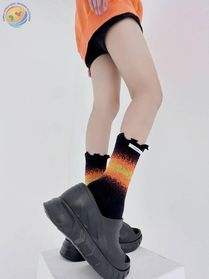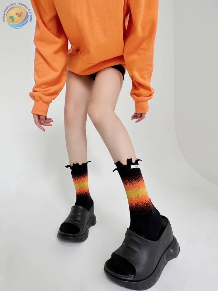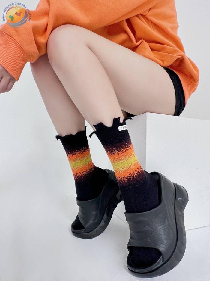 潮牌小众设计师袜子颗粒渐变撞色中筒袜个性ins风潮流乞丐花边袜