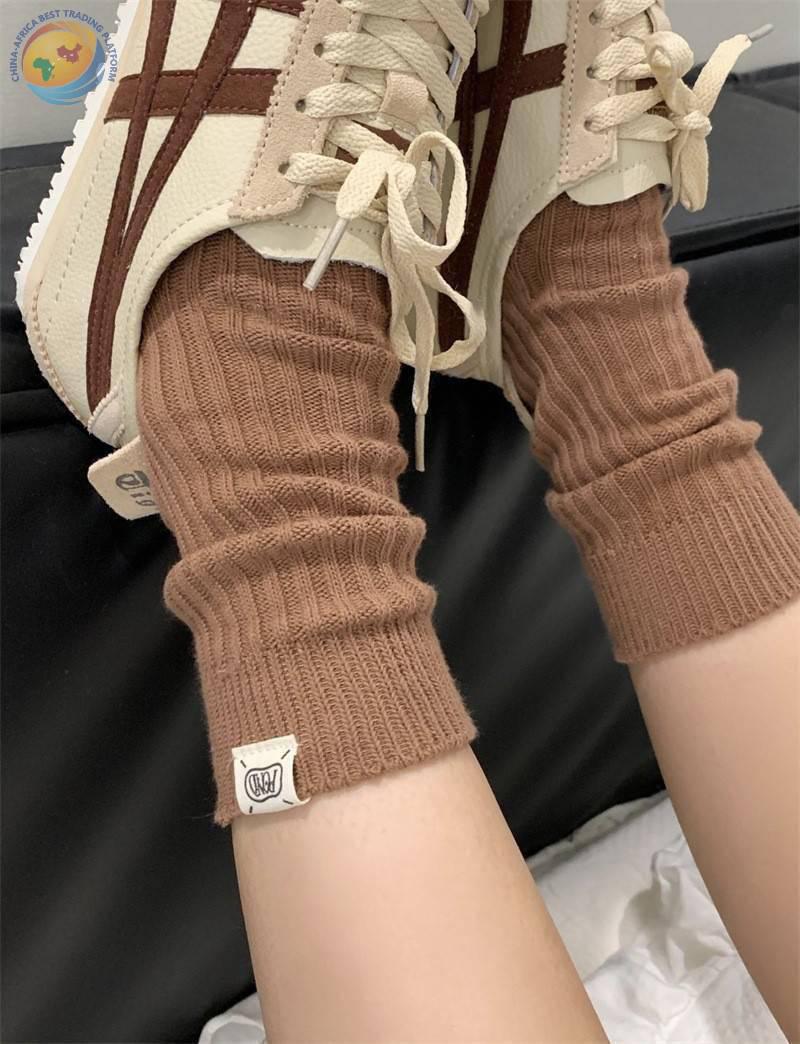 Thick line solid color cloth label pile pile socks Women's autumn and winter knitted snow boots socks women's cotton mid-tube socks wool stockings