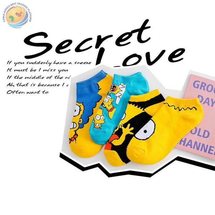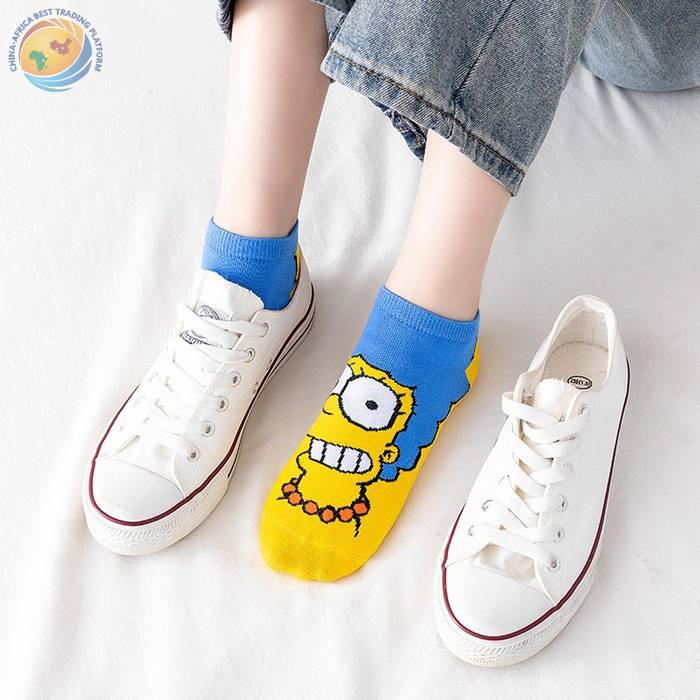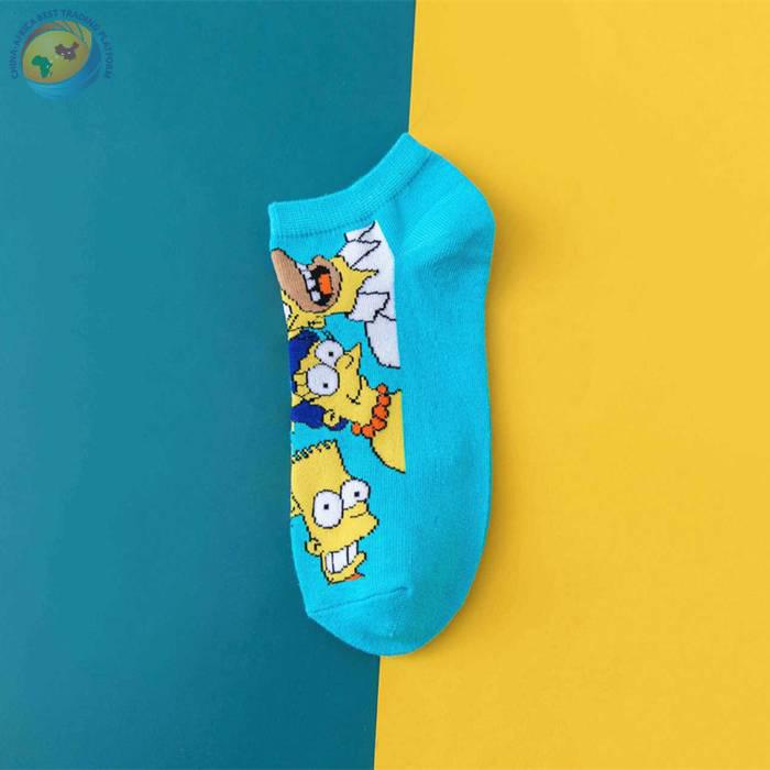 日系潮牌辛普森船袜夏季低帮透气卡通涂鸦短袜男女潮流纯棉短筒袜