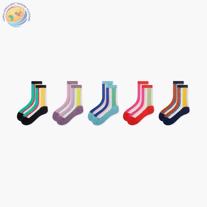 潮牌夏季清凉透气薄款玻璃丝彩色透气中筒袜ins竖条拼色卡丝女袜