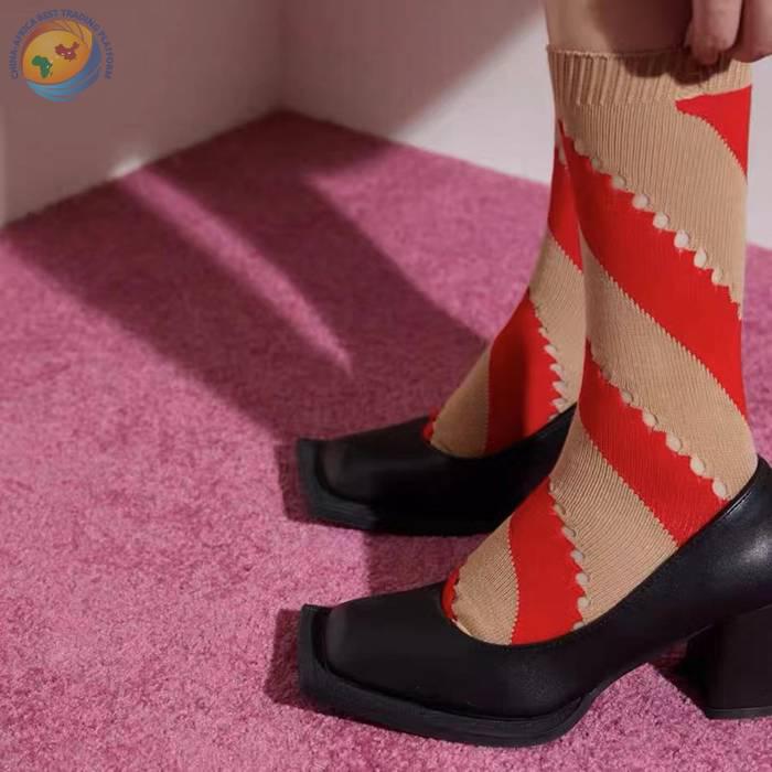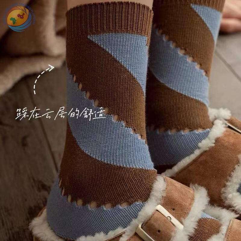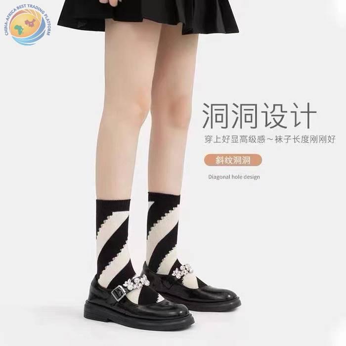 2022新款日本潮牌三宅斜纹洞洞袜走秀袜镂空条纹ins堆堆网红女袜