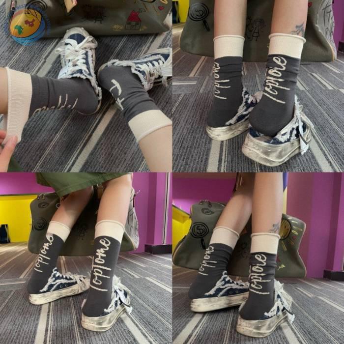 小众网红后跟拼色字母高级毛巾底中筒袜