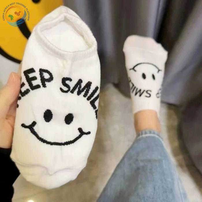 Dongdaemun smiling face boat socks net red men and women pure cotton non-slip invisible socks
