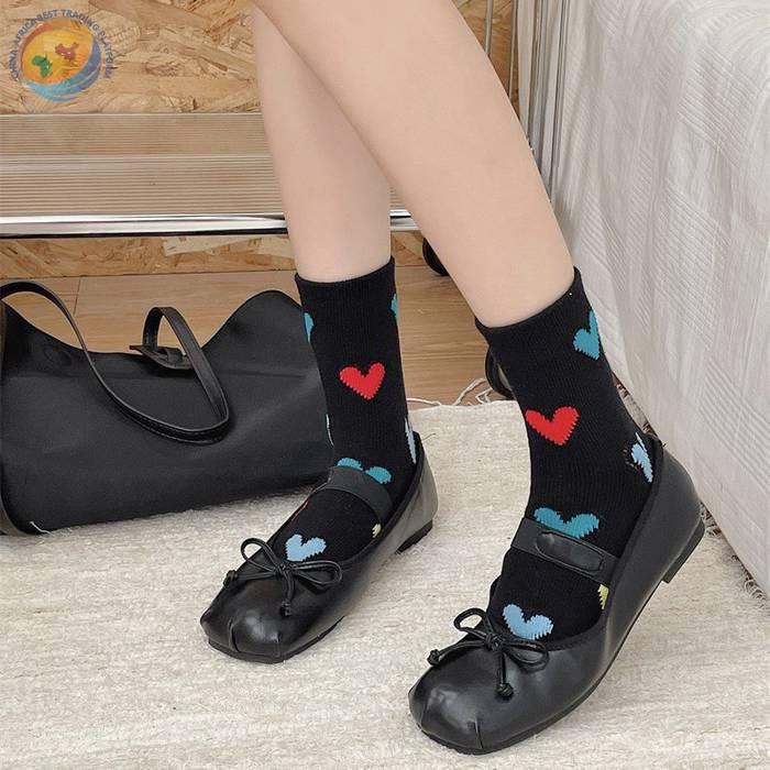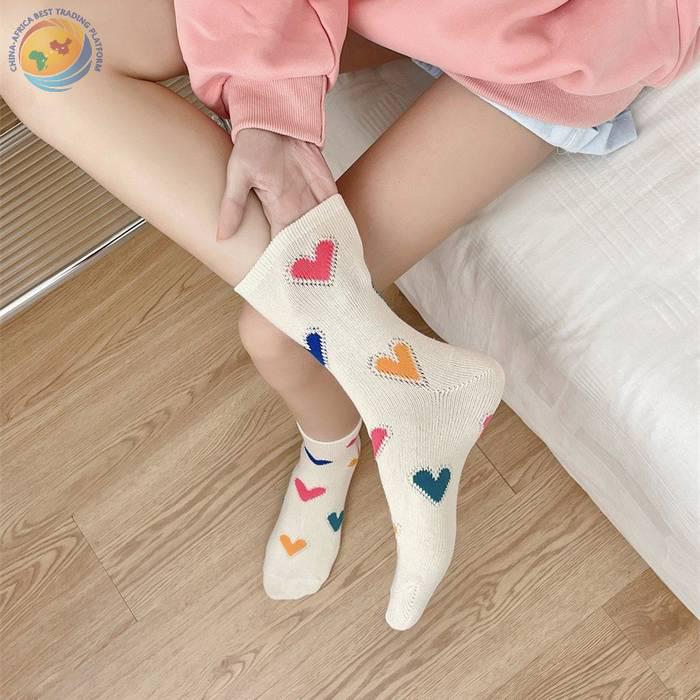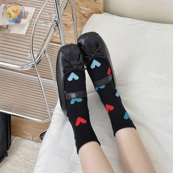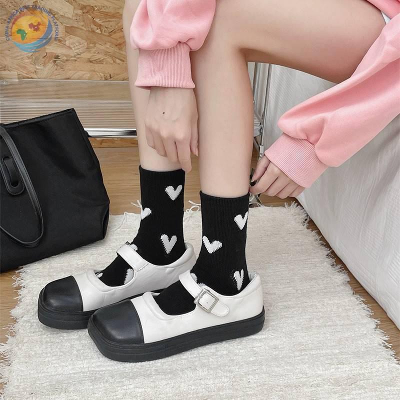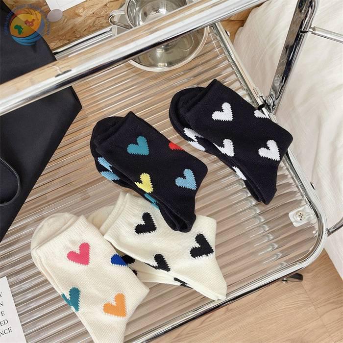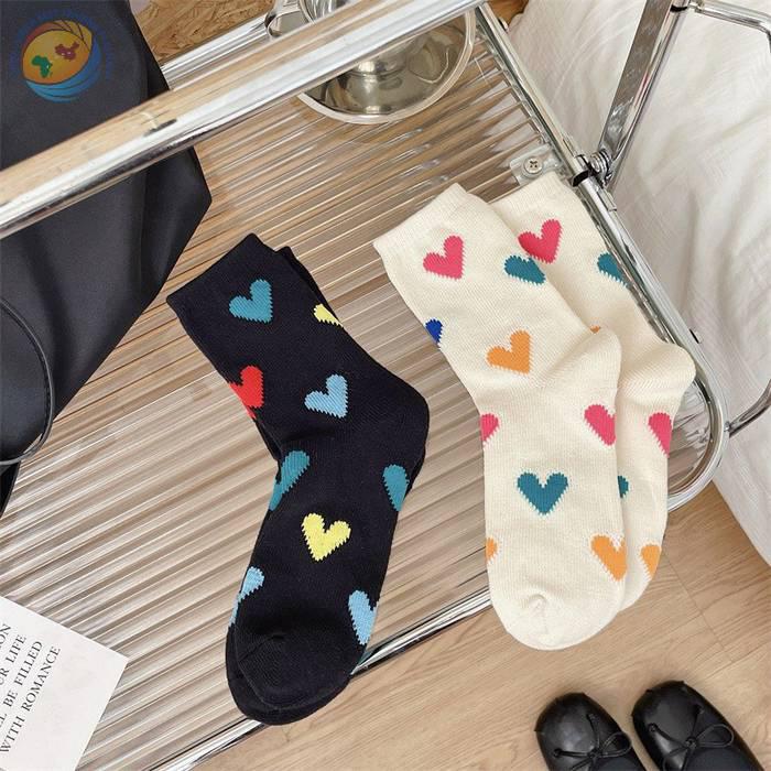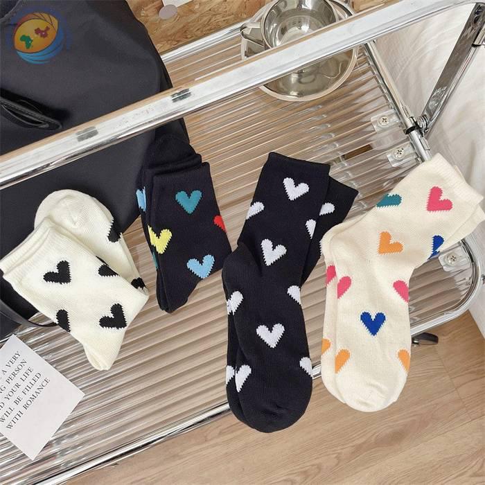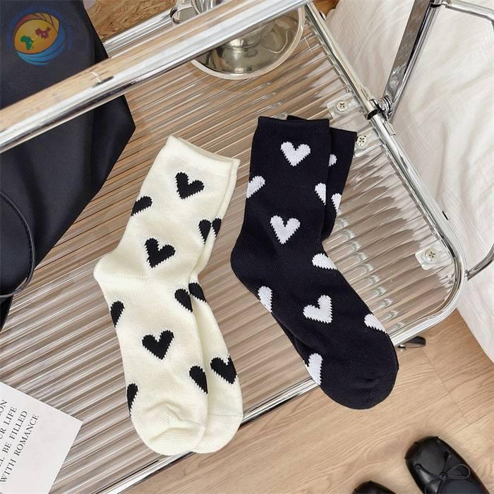 欧货拼色粗线黑白爱心袜子男女纯棉彩色中筒袜