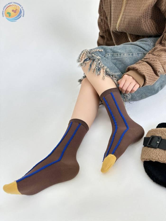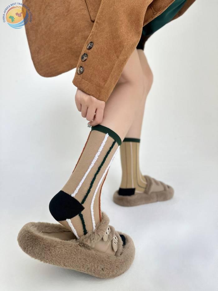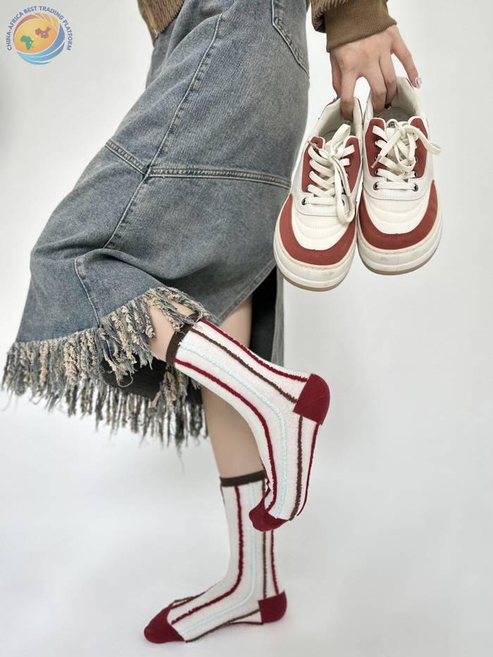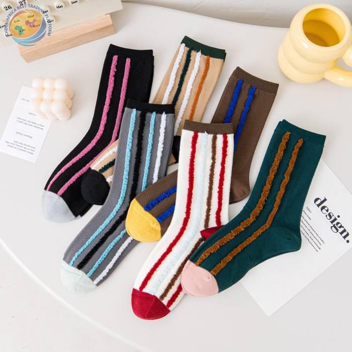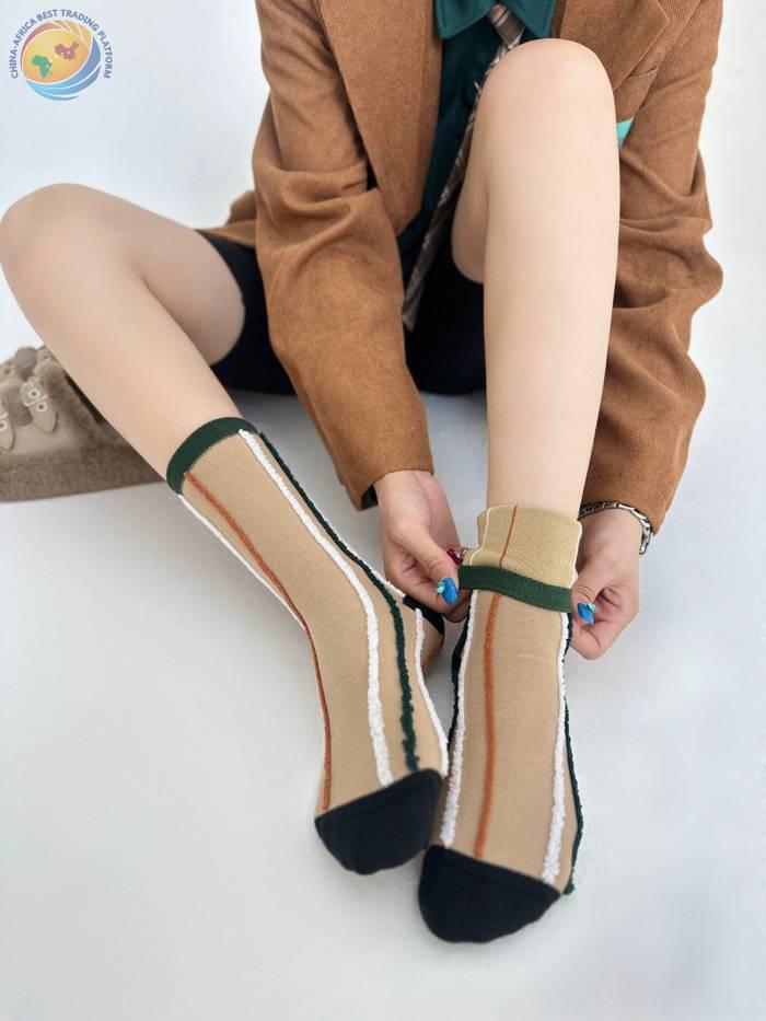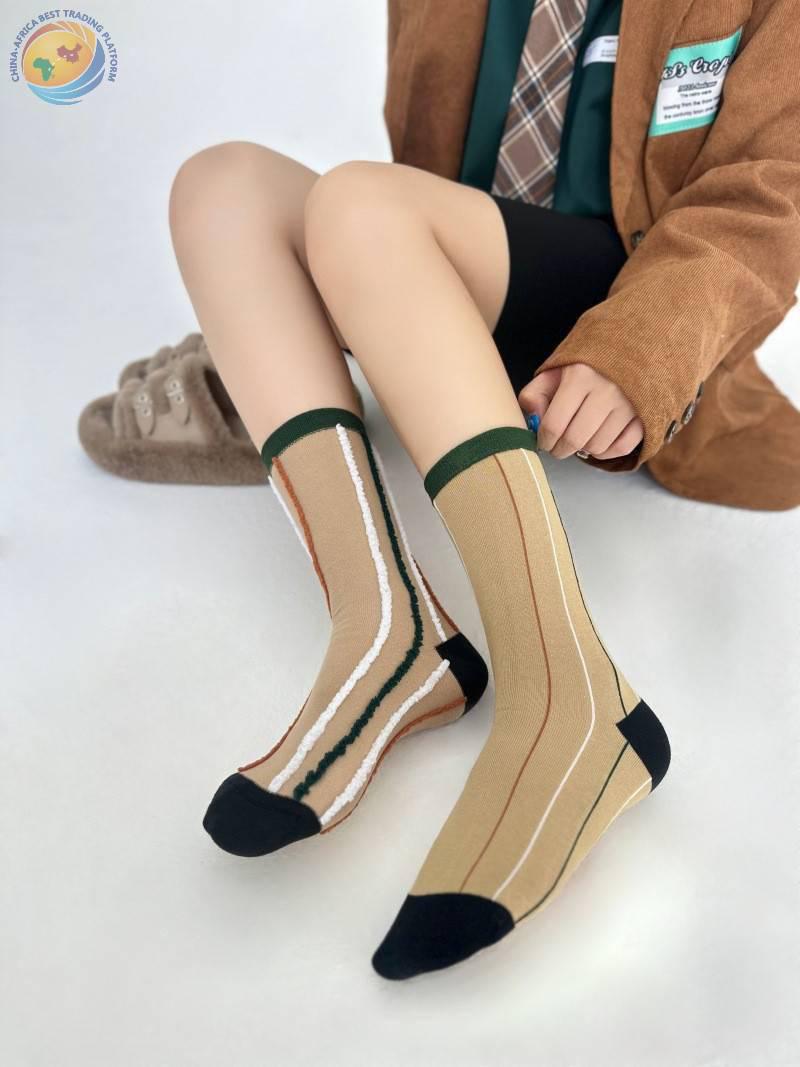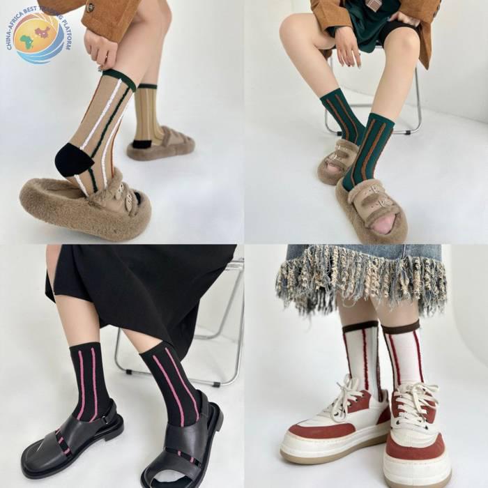 反穿竖条纯棉中筒袜男女时尚运动条纹堆堆袜