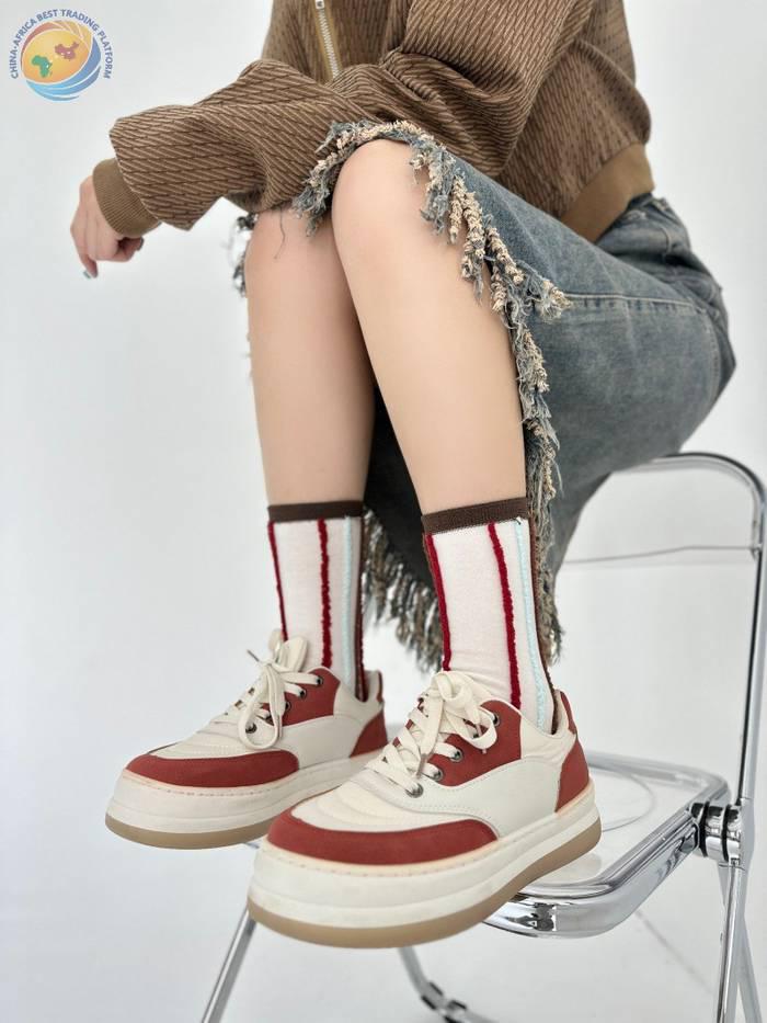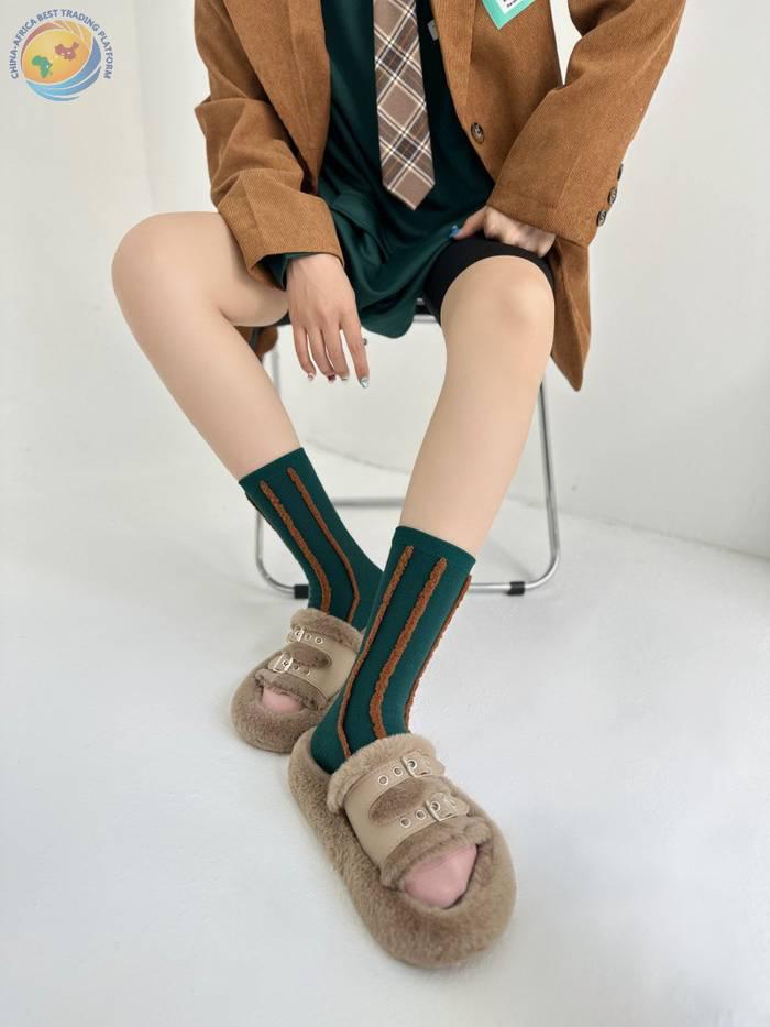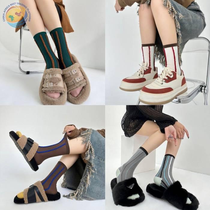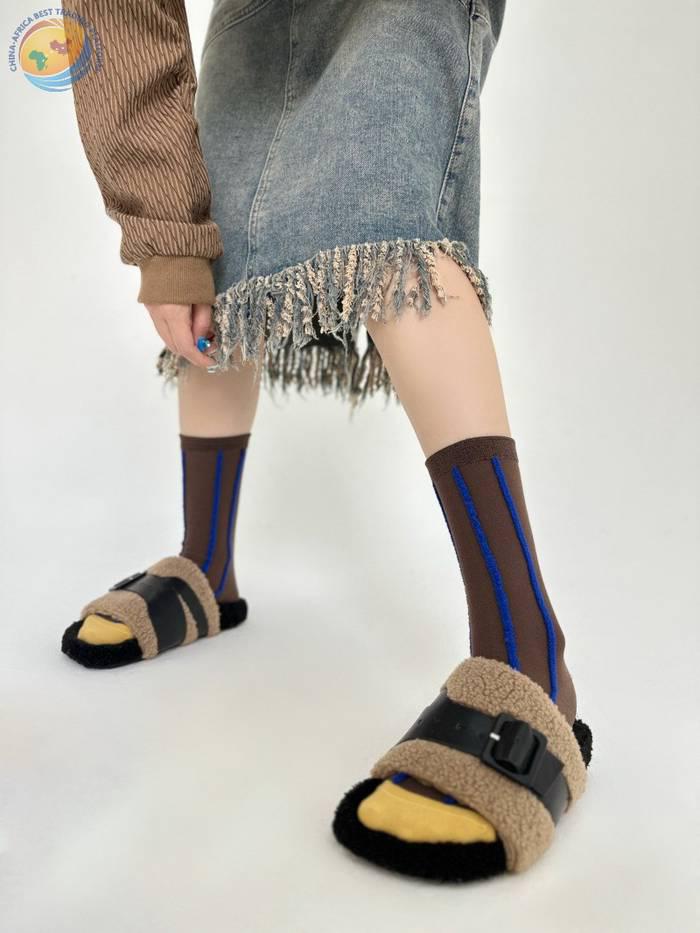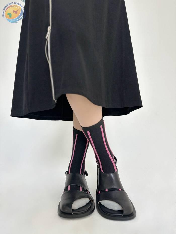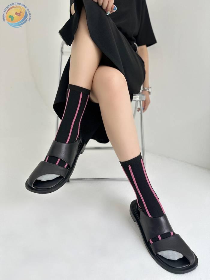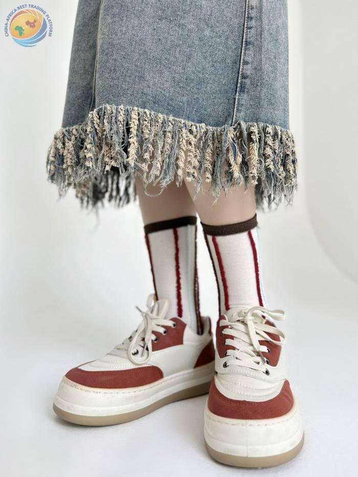 反穿竖条纯棉中筒袜男女时尚运动条纹堆堆袜