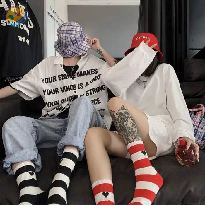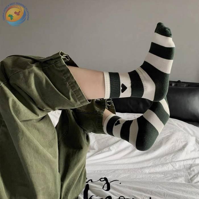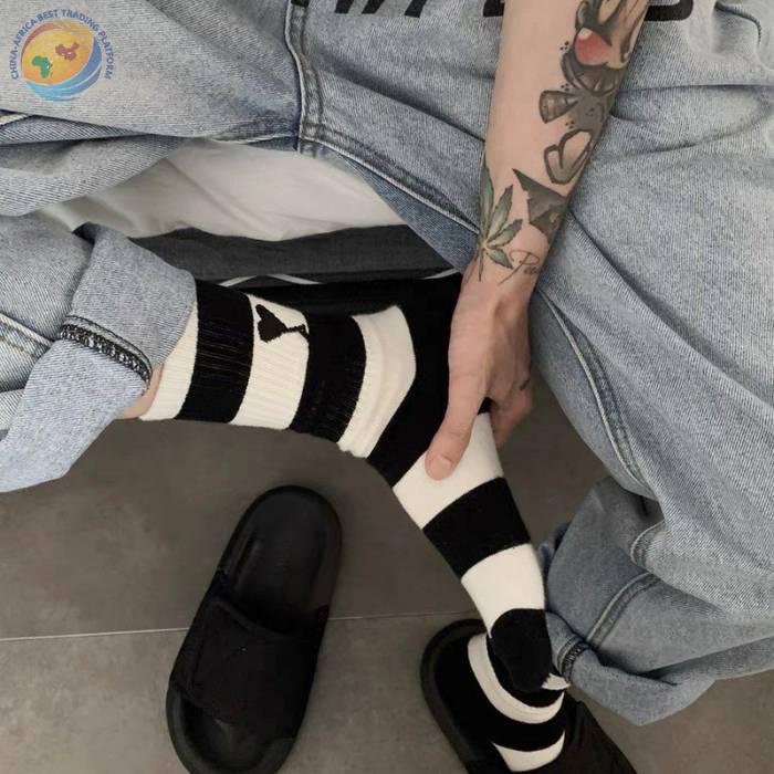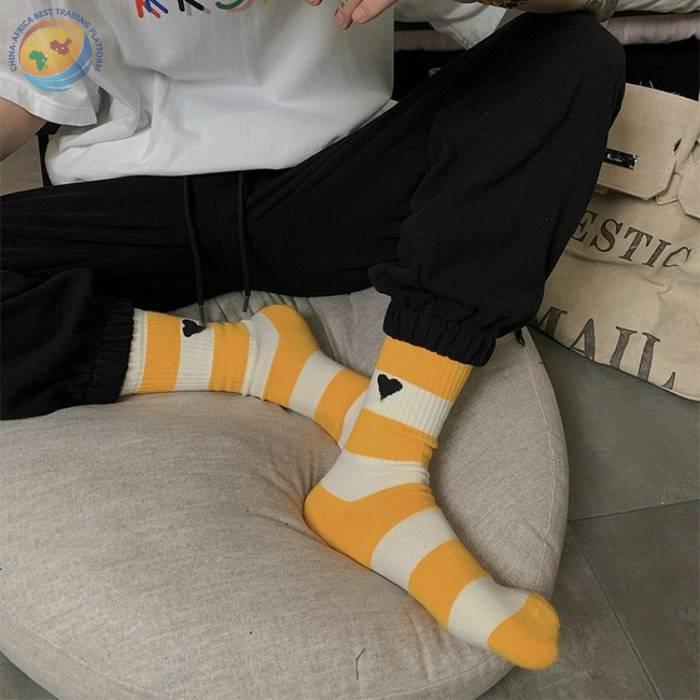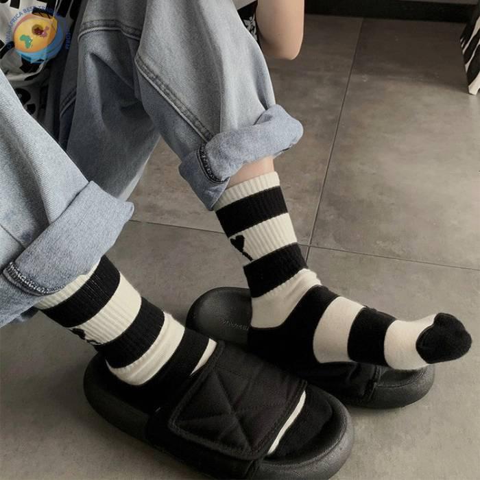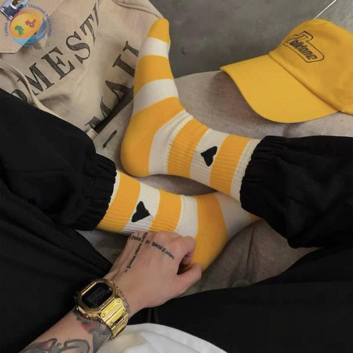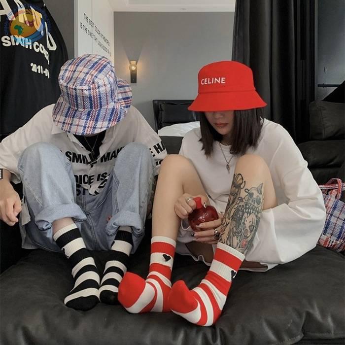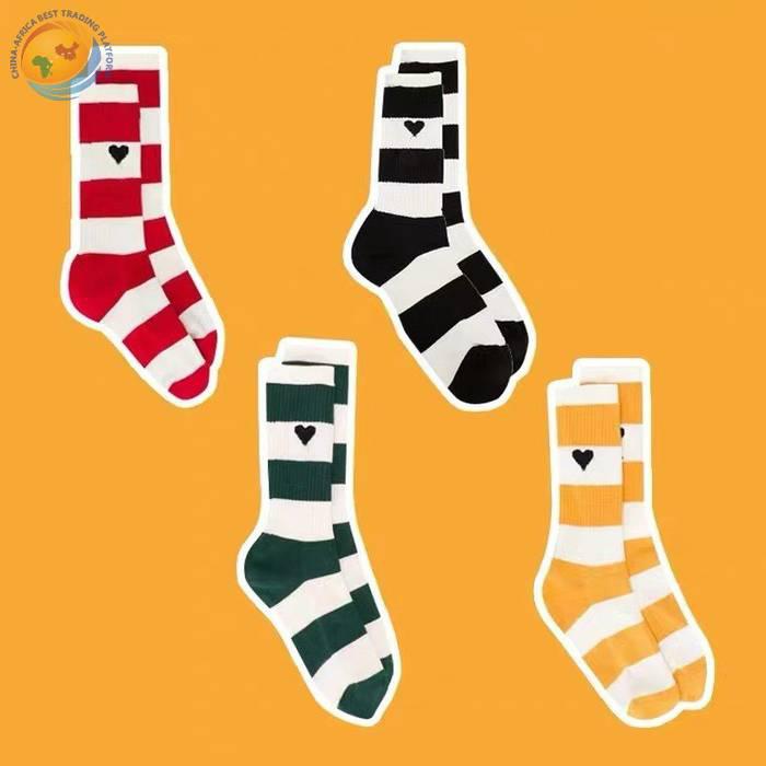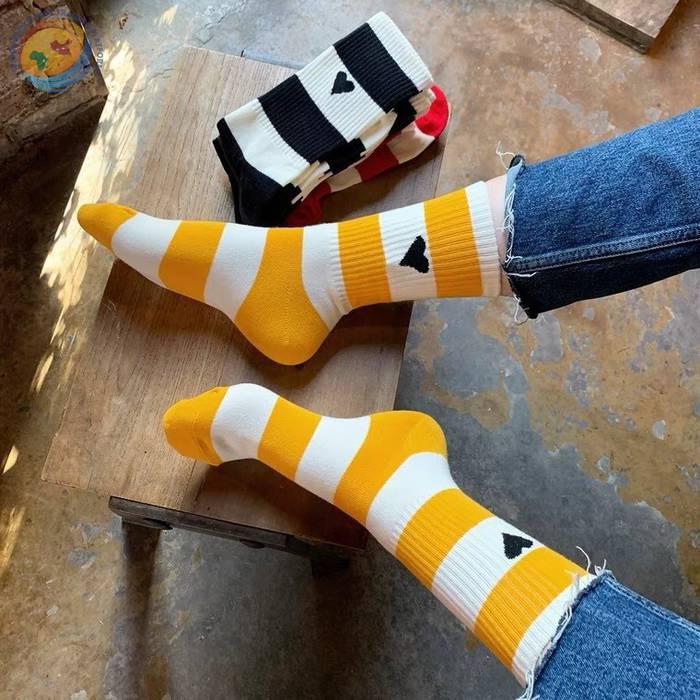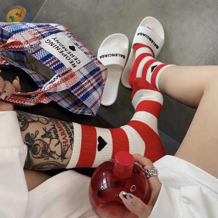 潮牌条纹黑桃A字母爱心袜子棉中筒