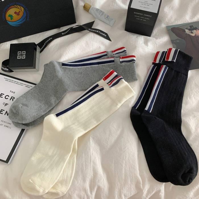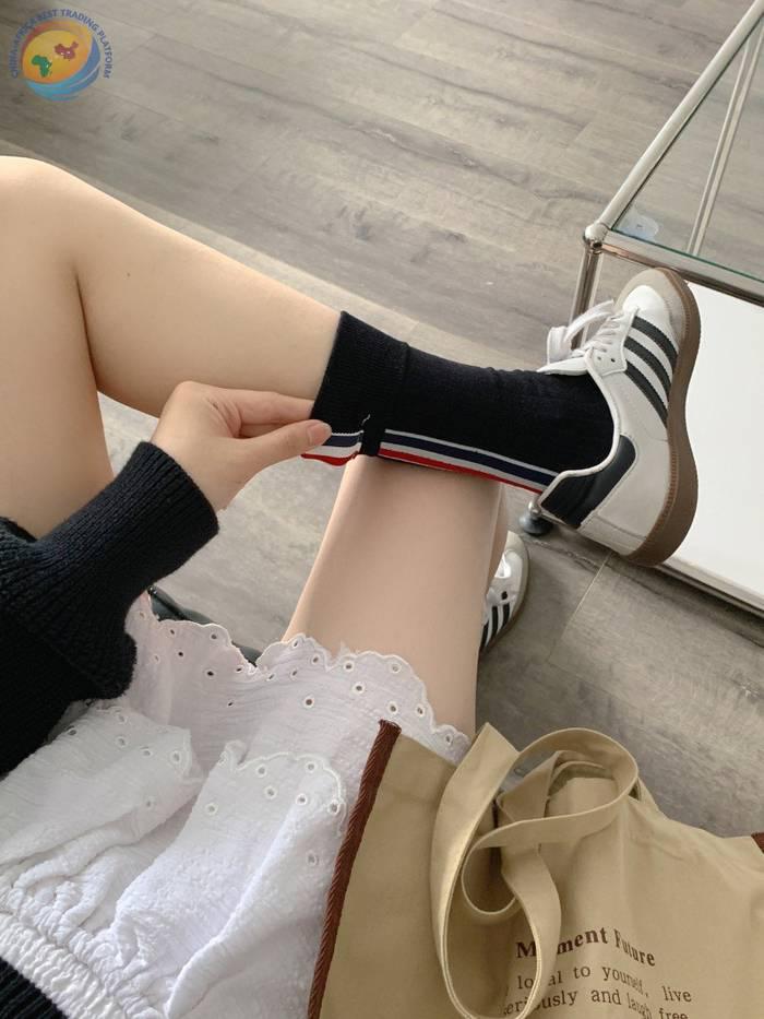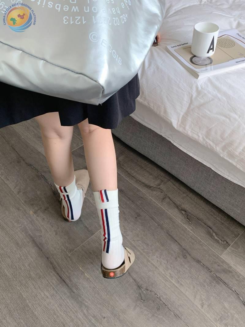韩国ins潮牌tb袜欧货后跟布标中筒袜子