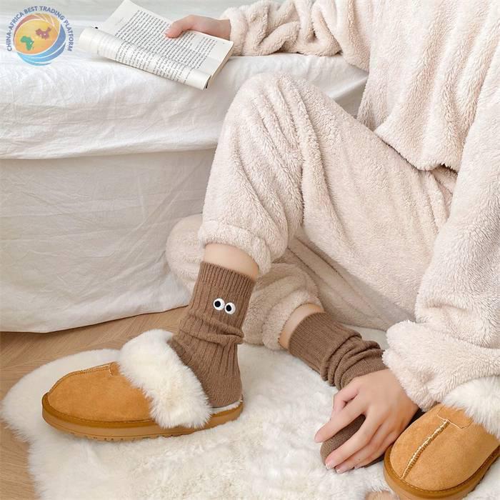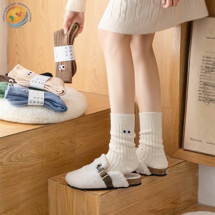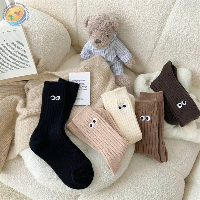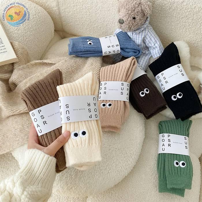 秋冬羊毛袜韩版纯色眼睛刺绣中筒袜