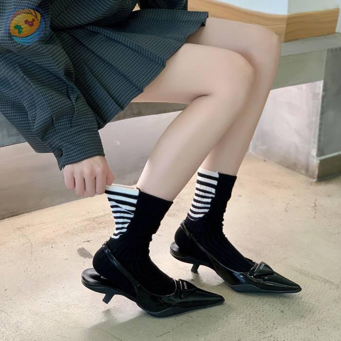 欧货小众设计ins风后跟宽口条纹拼接袜子
