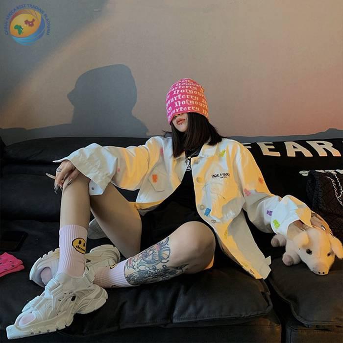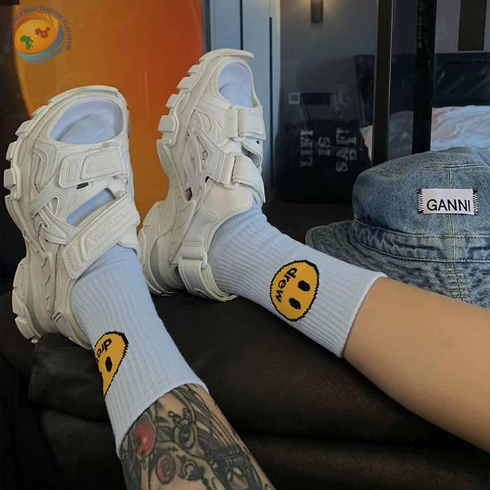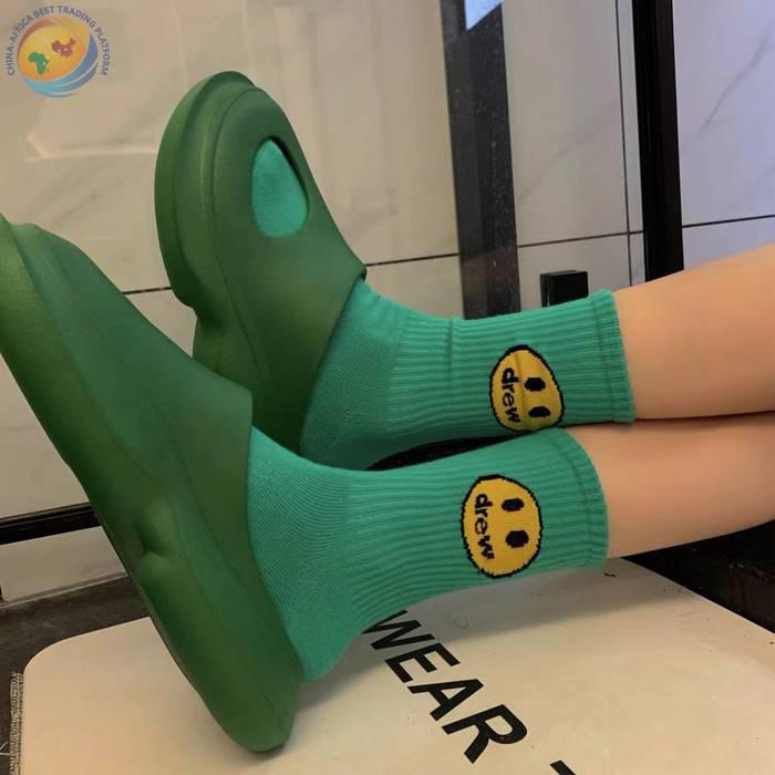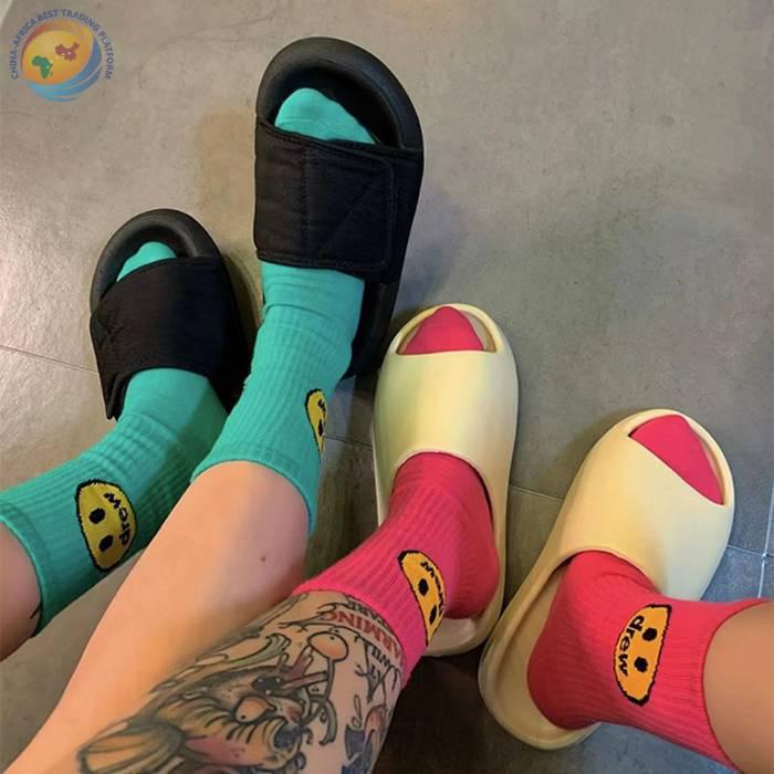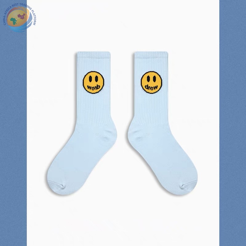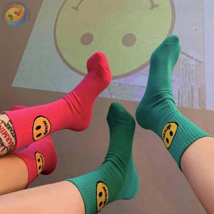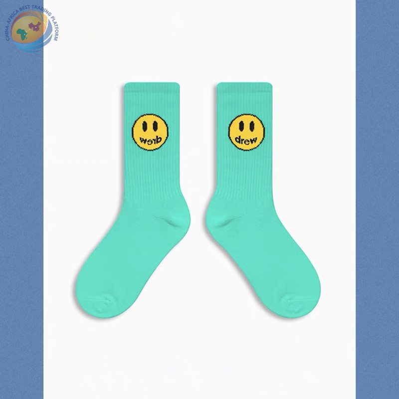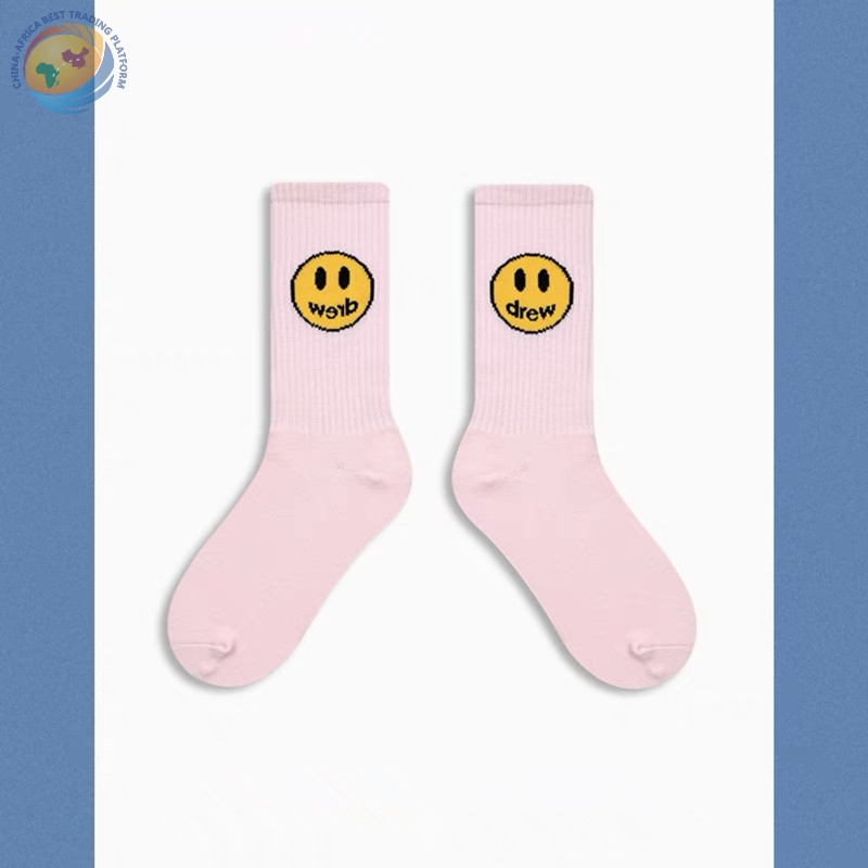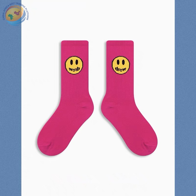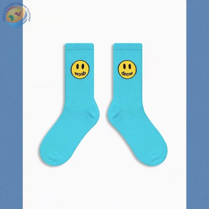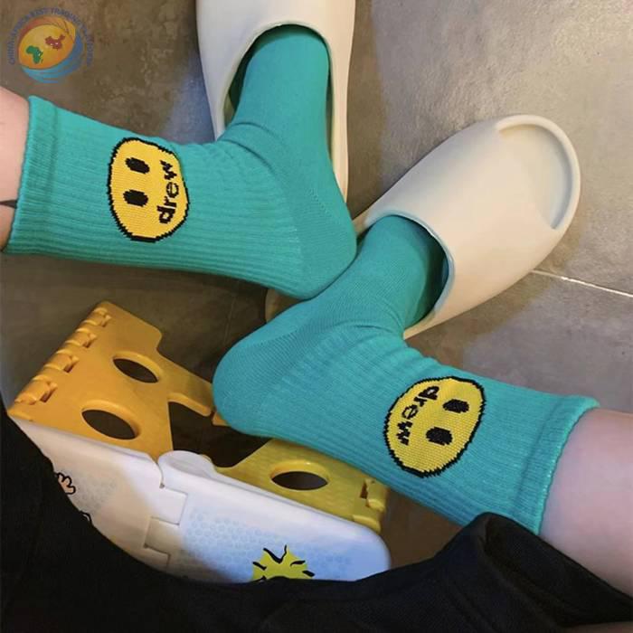 潮牌笑脸袜子比伯同款蓝色粉纯棉中筒袜子