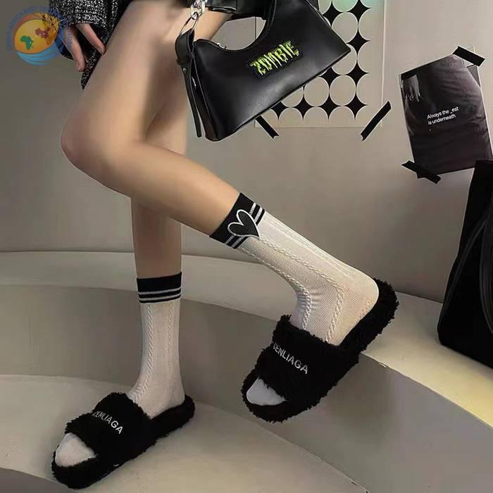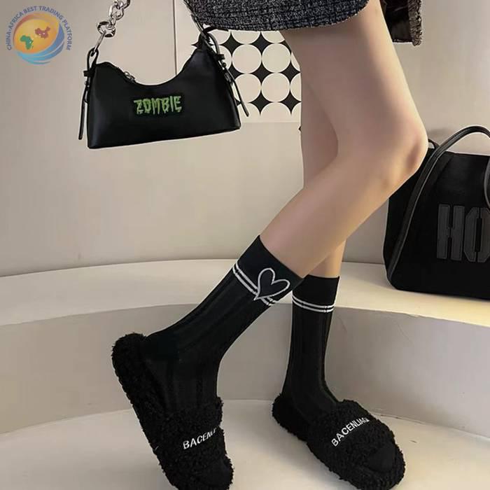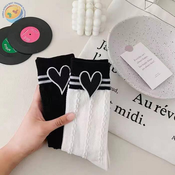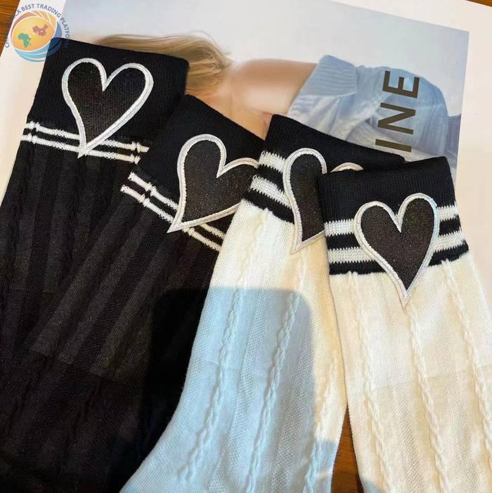 爱心贴标纯棉网红款个性中筒袜女