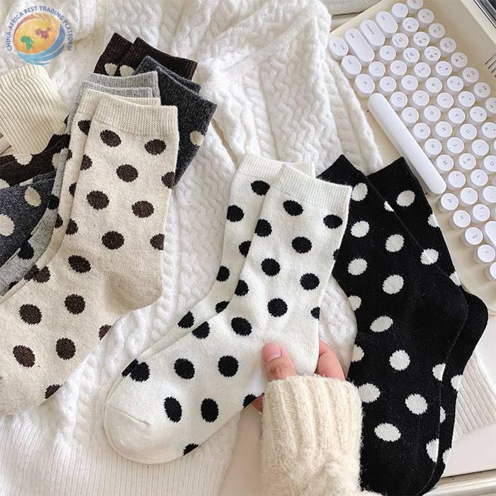 Polka dot wool socks mid-tube socks for women warm cute day pile socks