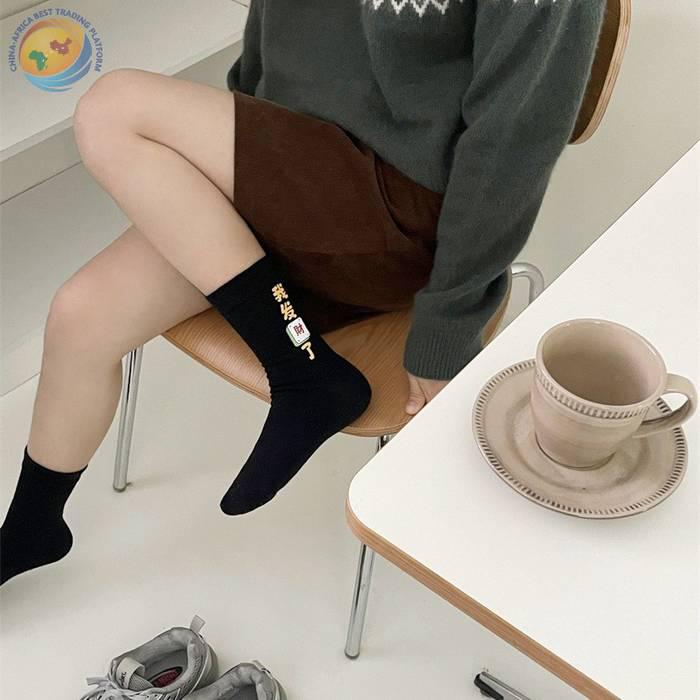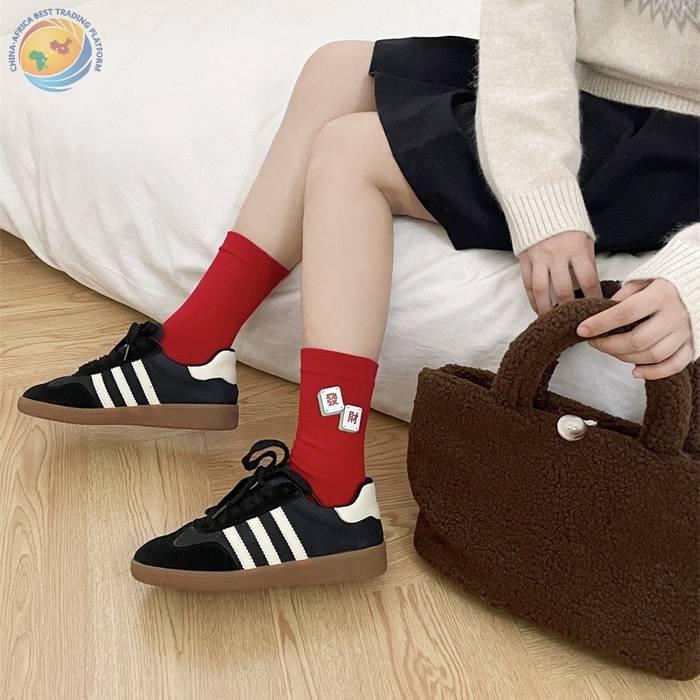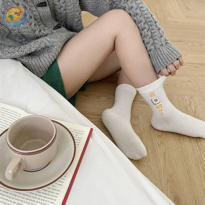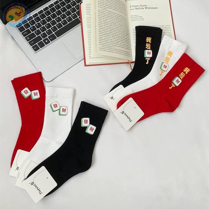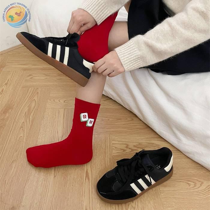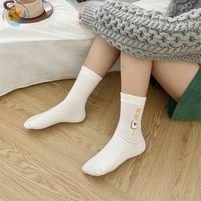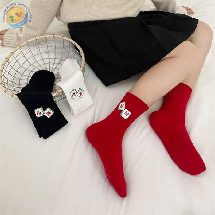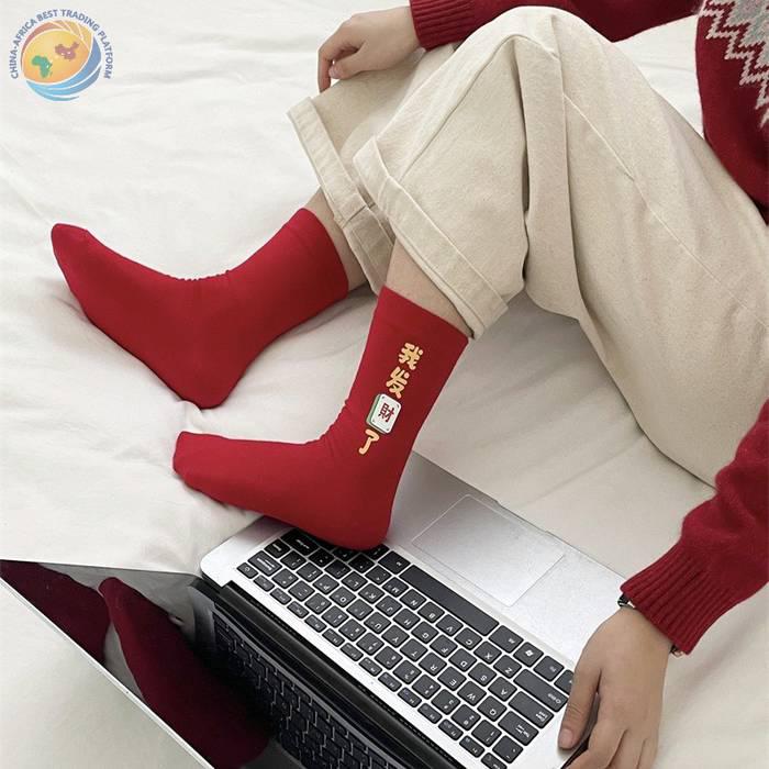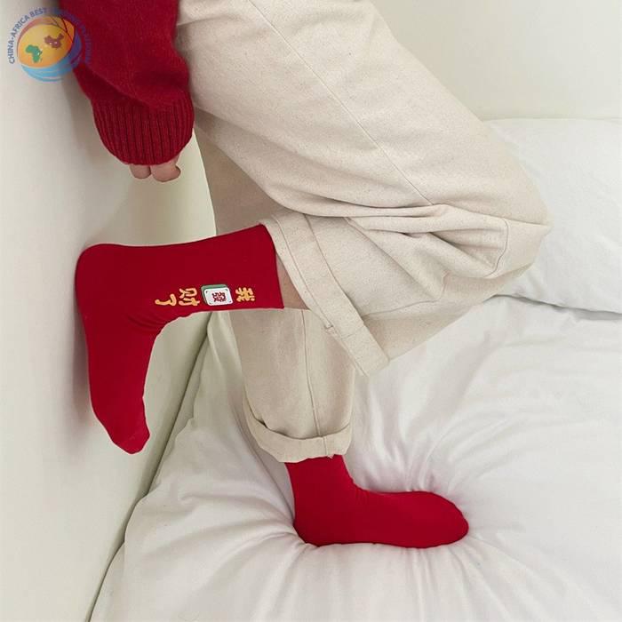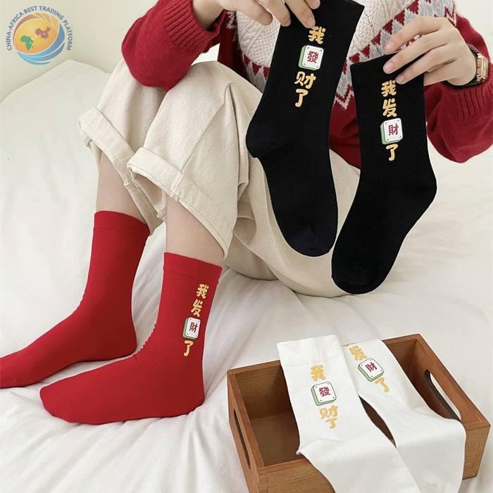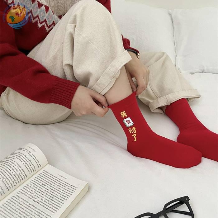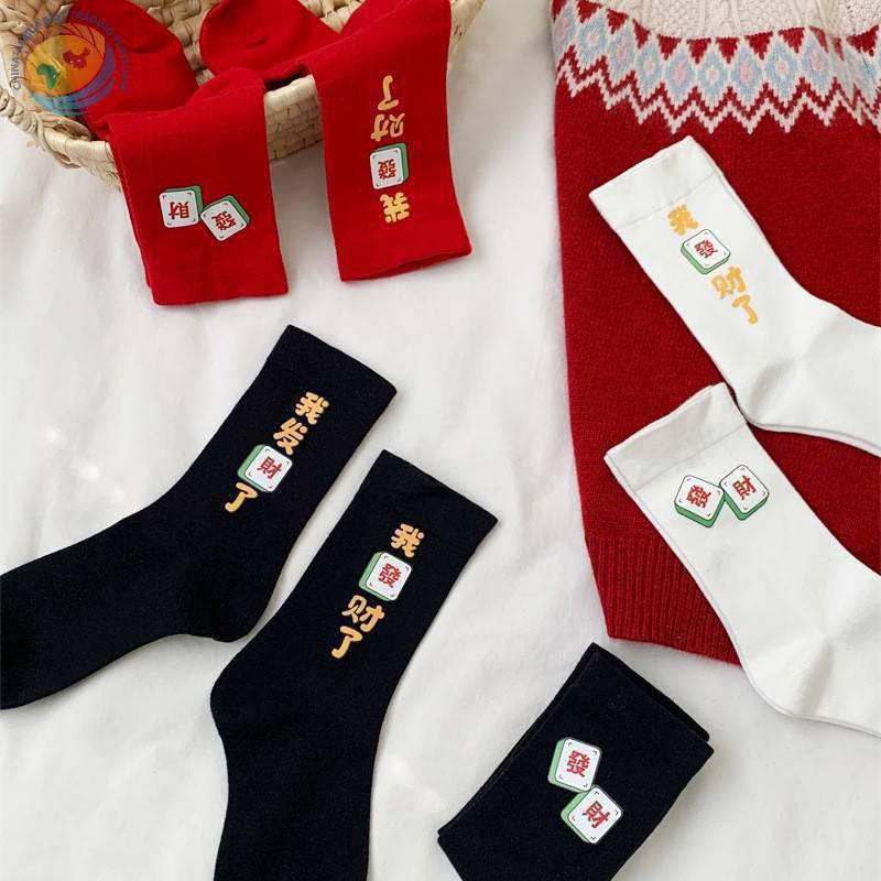 “我发财了”发财袜子男女红色本命年中筒袜