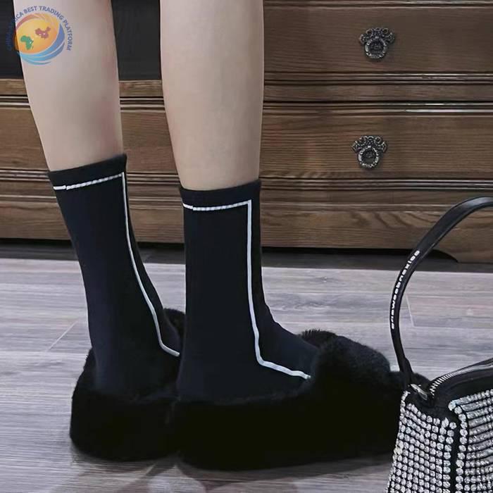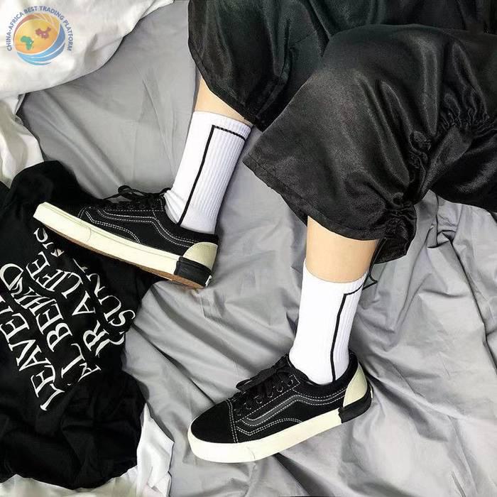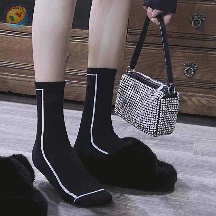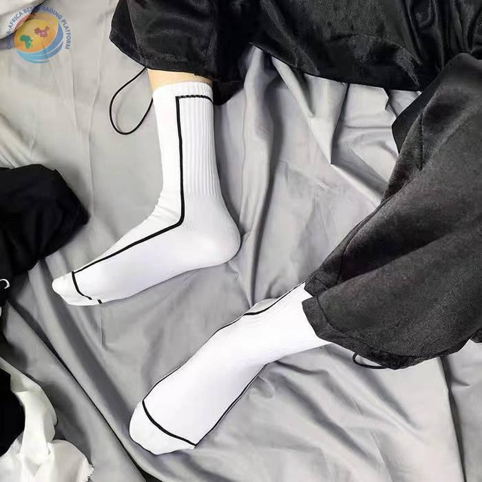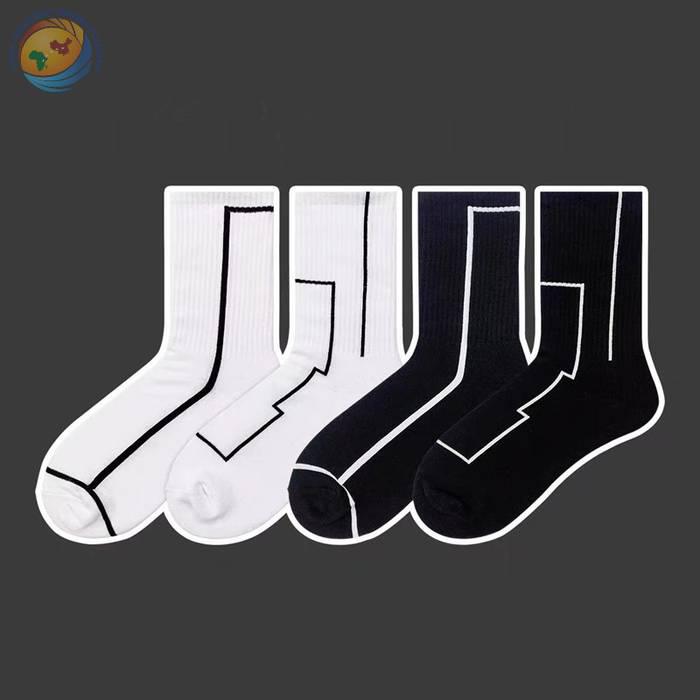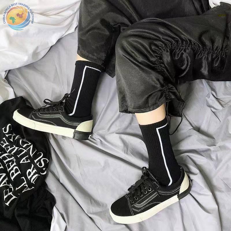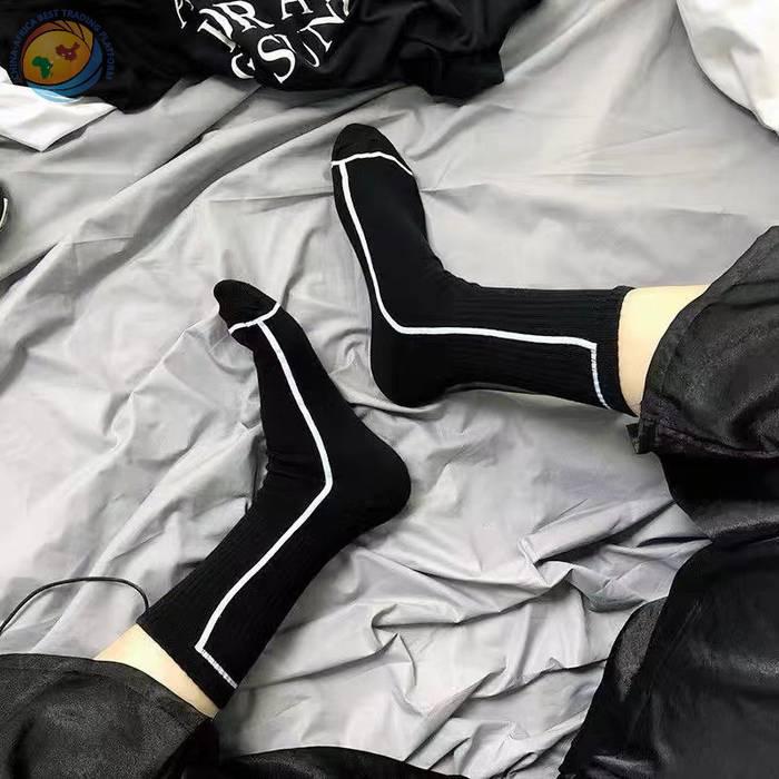 潮牌日系黑白线条袜子ulzzang中筒袜条纹纯棉袜子